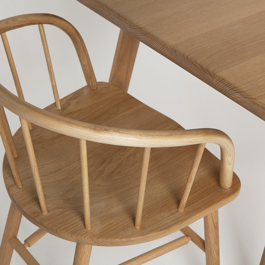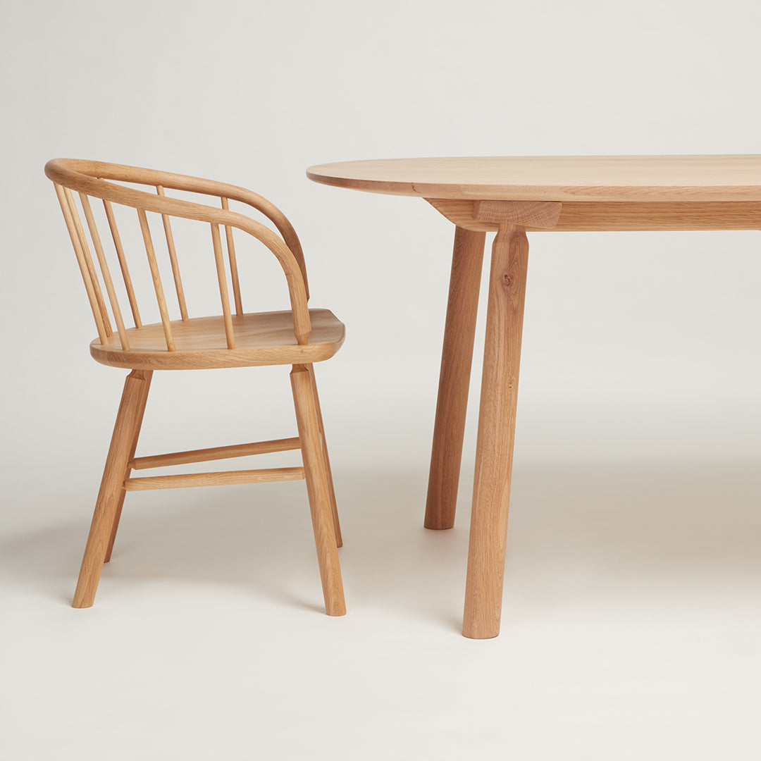 Two chair typologies from the 19th century, Thomas Hardy’s birth century, inspired its design: firstly the Captain’s chair originally a low-backed wooden armchair and secondly, the Smokers bow, a low back Windsor, often used in smoking rooms, public houses, barbers shops and cottages.