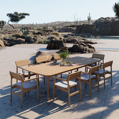 Designed by David Irwin and constructed from Grade A Teak, the Tanso Collection is highly robust and weather resistant for outdoor use, yet it’s elegant and detailed aesthetic also affords it a place inside.