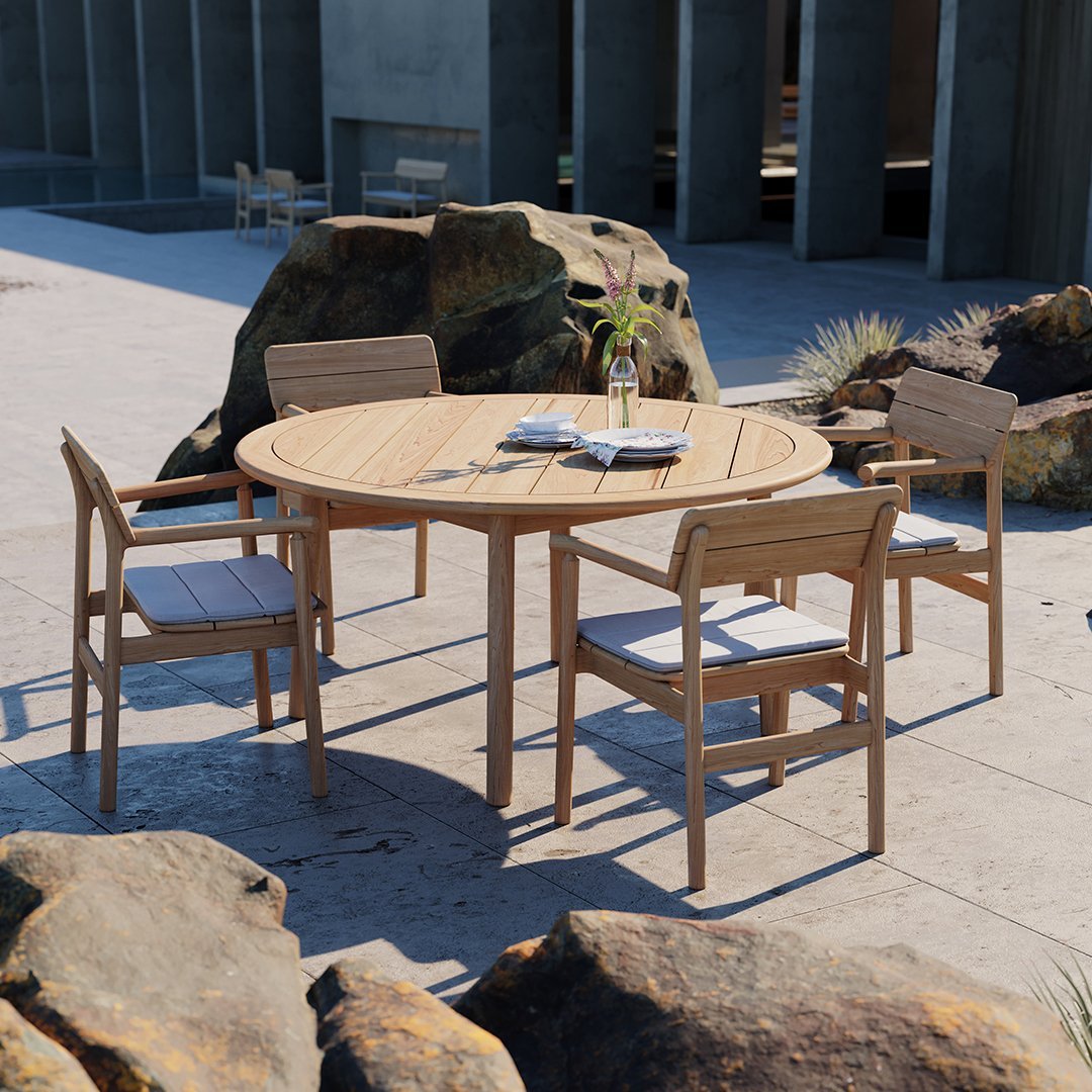 Designed by David Irwin and constructed from Grade A Teak, the Tanso Collection is highly robust and weather resistant for outdoor use, yet it’s elegant and detailed aesthetic also affords it a place inside.