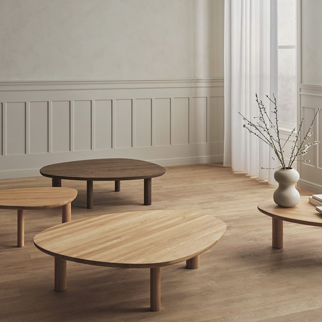 In 2017, Singapore-based Dazingfeelsgood participated in the Bolia Design Awards. The young designers had a dream of crafting a piece of furniture whose beauty lies in its irregularities. The result of their efforts was Latch - a sculptural series of coffee tables made from FSC®-certified solid oak, featuring an array of contours and where the diameter of each component is unique. The design is simple yet experimental at the same time.