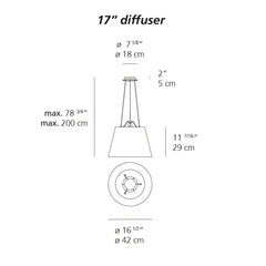 Shade: 17" Dia x 11.4" H | Canopy: 7.1" Dia x 2" H | Maximum Hanging: 78.7" L