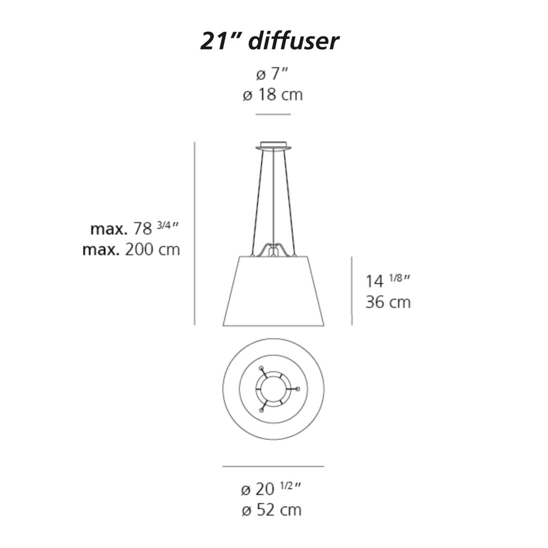 21" Dia x 14.2" | Canopy: 7.1" Dia x 2" H | Maximum Hanging: 78.7" L