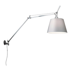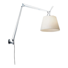 An extension to the iconic Tolomeo family, Tolomeo Mega features the same arm balancing system as the Tolomeo table lamp combined with a selection of parchment or fabric shades, creating its own sub-family. Available in table clamp, floor, wall and suspension versions.