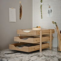 A letter tray with graduated levels in a classic and recognizable office expression with three functional oak trays, designed by VE2. For added flexibility, you can pull out a tray and take it with you when you work away from your desk.