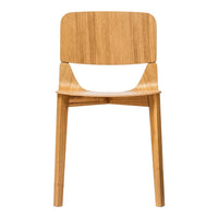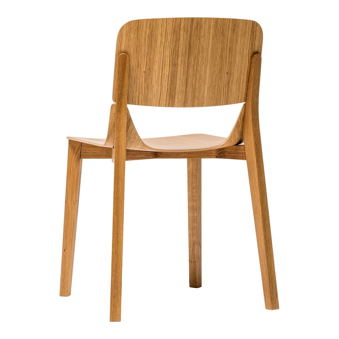 The seat and backrest from molded plywood suggest a model of optical and physical lightness. Its stability and strength are guaranteed by the construction made of bent solid wood. Apart from the veneer seat made of beech or oak, an upholstered version is also available.