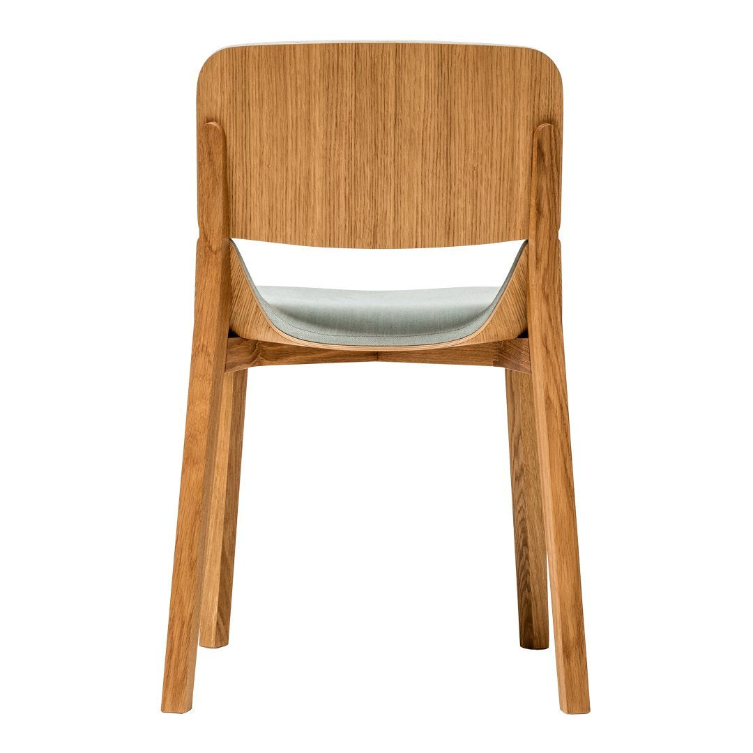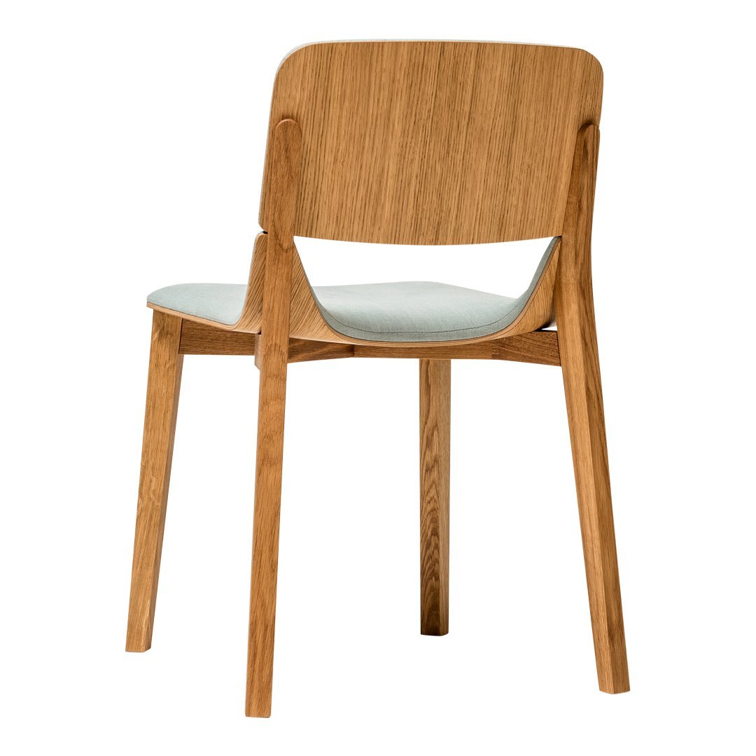 The seat and backrest from molded plywood suggest a model of optical and physical lightness. Its stability and strength are guaranteed by the construction made of bent solid wood. Apart from the veneer seat made of beech or oak, an upholstered version is also available.