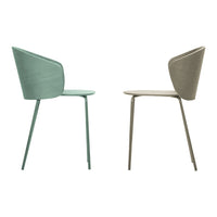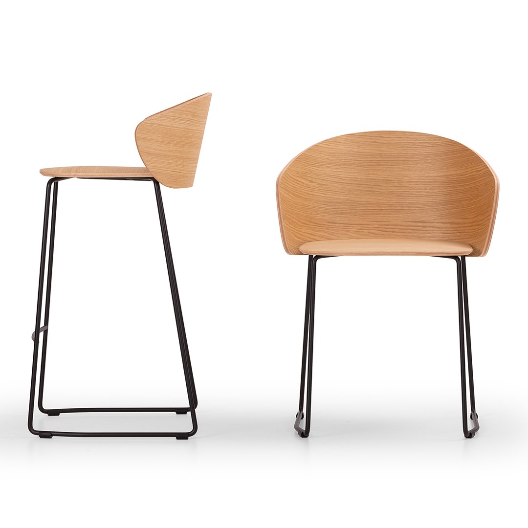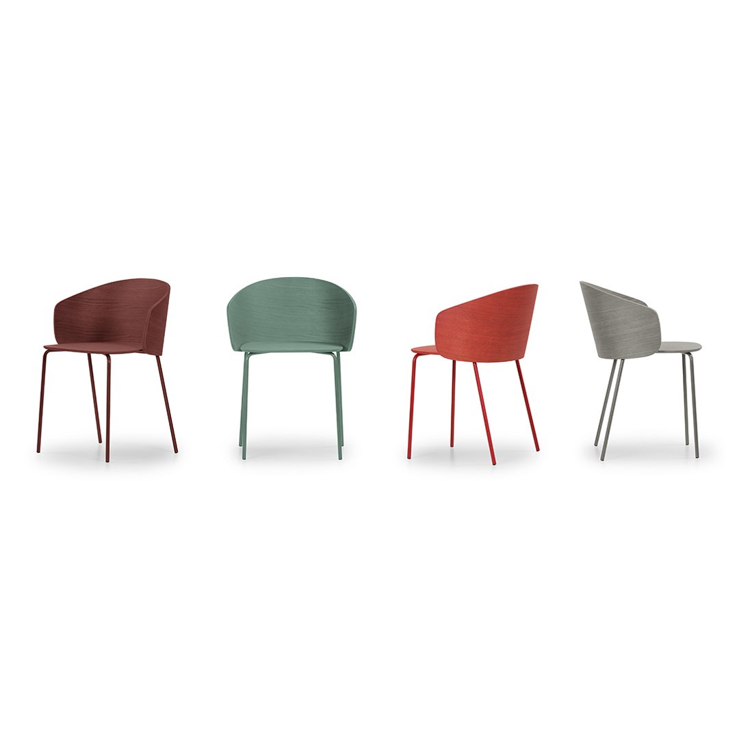 From the success of the NOT family of upholstered armchairs comes the new compact and light version characterized by a curved wooden shell with variable thickness.