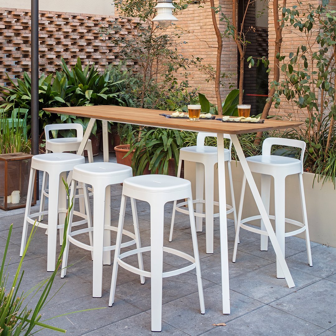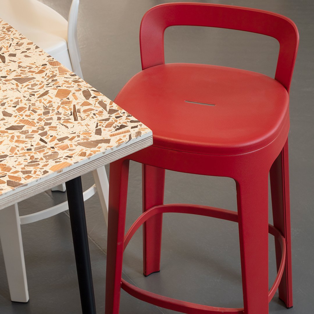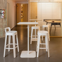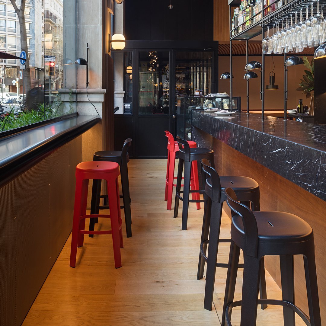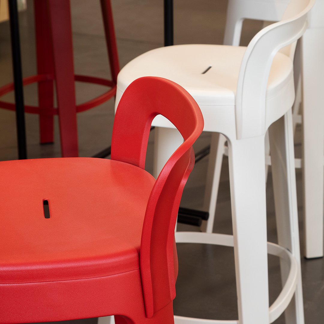 The Ombra stool has a clean design, with sleek, elegant lines; its comfortable, generously sized ergonomic seat; its range of eye-catching and easy-to-match colors; its different heights to suit all sorts of tables and bars. Ombra is designed and manufactured for intense use both indoors and outdoors. Whether size you choose (bar, counter or low), with or without a backrest, in one of its standard colors or in the customized colour required by your project, take your Ombra and take a seat.