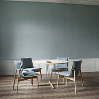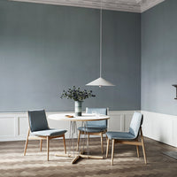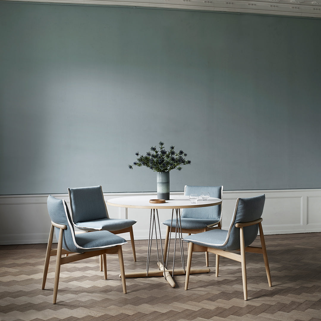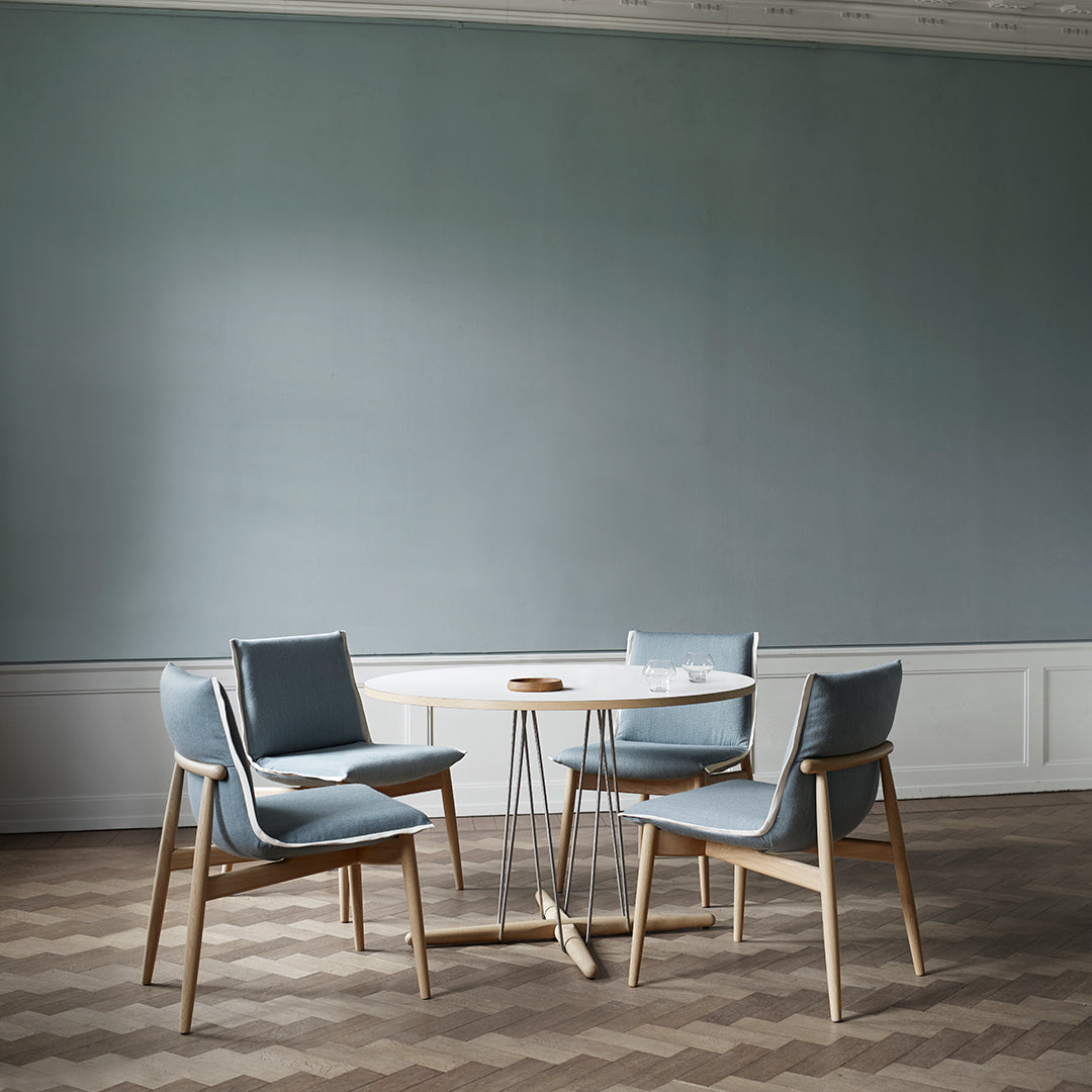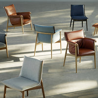 The Embrace Chair is a 2019 addition to the Embrace Series by Austrian design trio EOOS. Visually light in its expression, the chair has no armrests and will take up less space, fitting with any table. The design allows for great freedom of movement, a quality that enables users to communicate and interact freely. The upholstery is folded in two dimensions and the relaxed air of the upholstery contrasts the perfectly shaped wooden frame. It is a testimony to the unity between the craftsmanship and heritage of Carl Hansen & Son and the innovative design approach of EOOS.