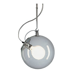 A hand-blown glass globe of light on a base and stem of polished chrome. Transparent yet created a softly diffused, dimmable light.
