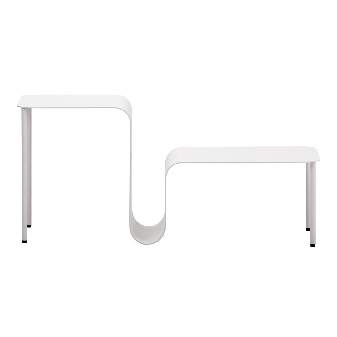It consists of wall shelves, free standing modular bookcases and practical tea tables.Wave is a complement made of metal sheets, the furniture elements are perfectly suited for public and private work environments, characterized by constantly changing working methods.