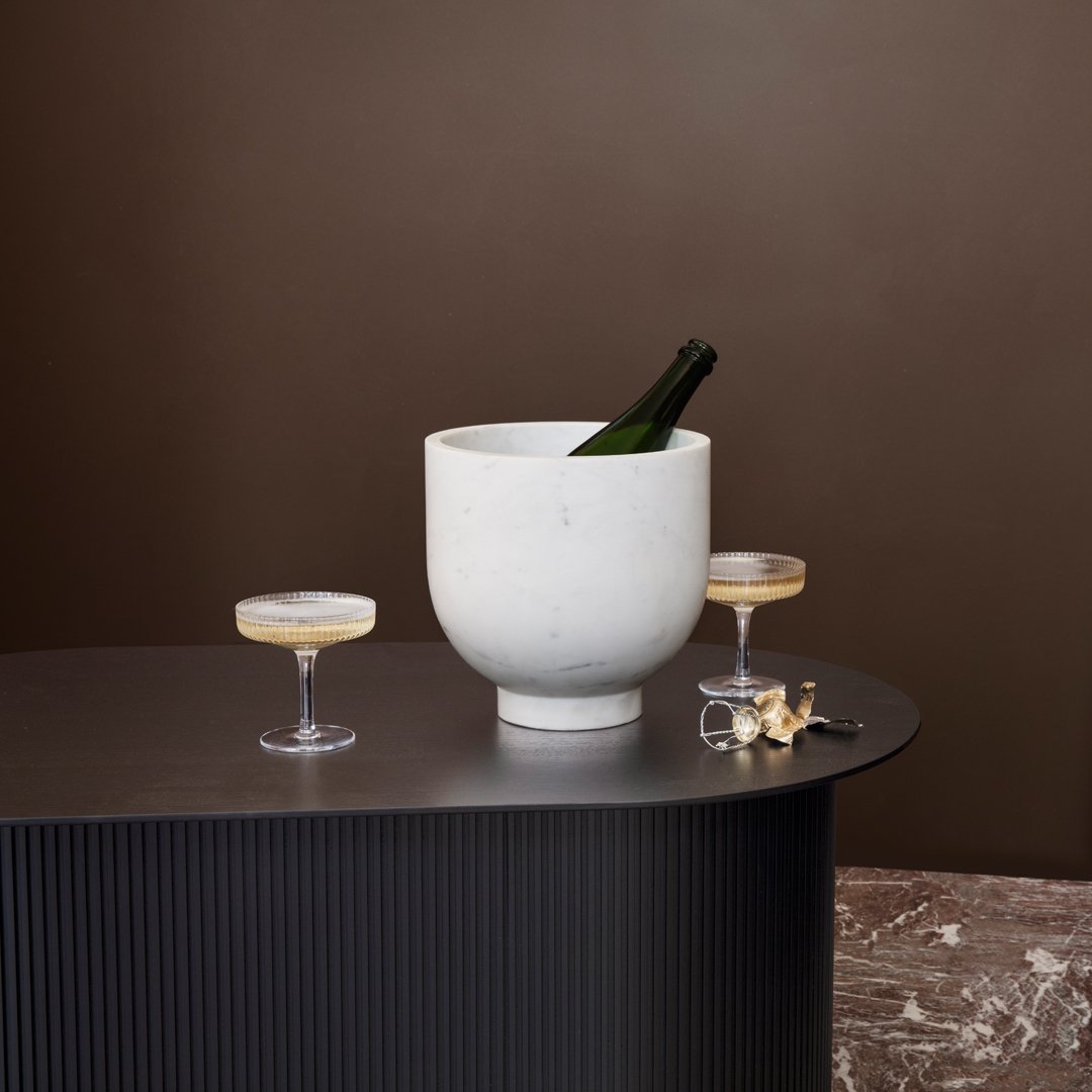 Modern and simple, yet with a hint of extravagance, the Alza Champagne Cooler elegantly sparks your parties. With its striking contours and robust body, fill the cooler with ice, and it will keep your favorite drinks perfectly chilled all through the night.