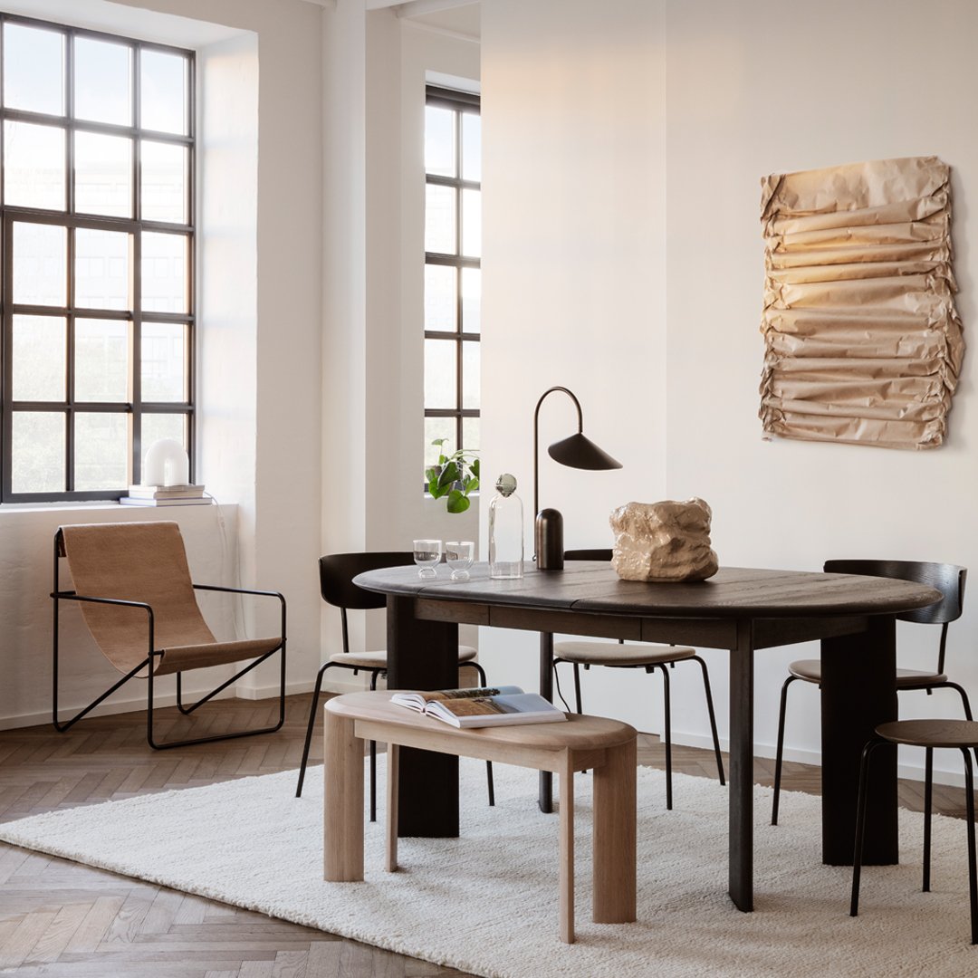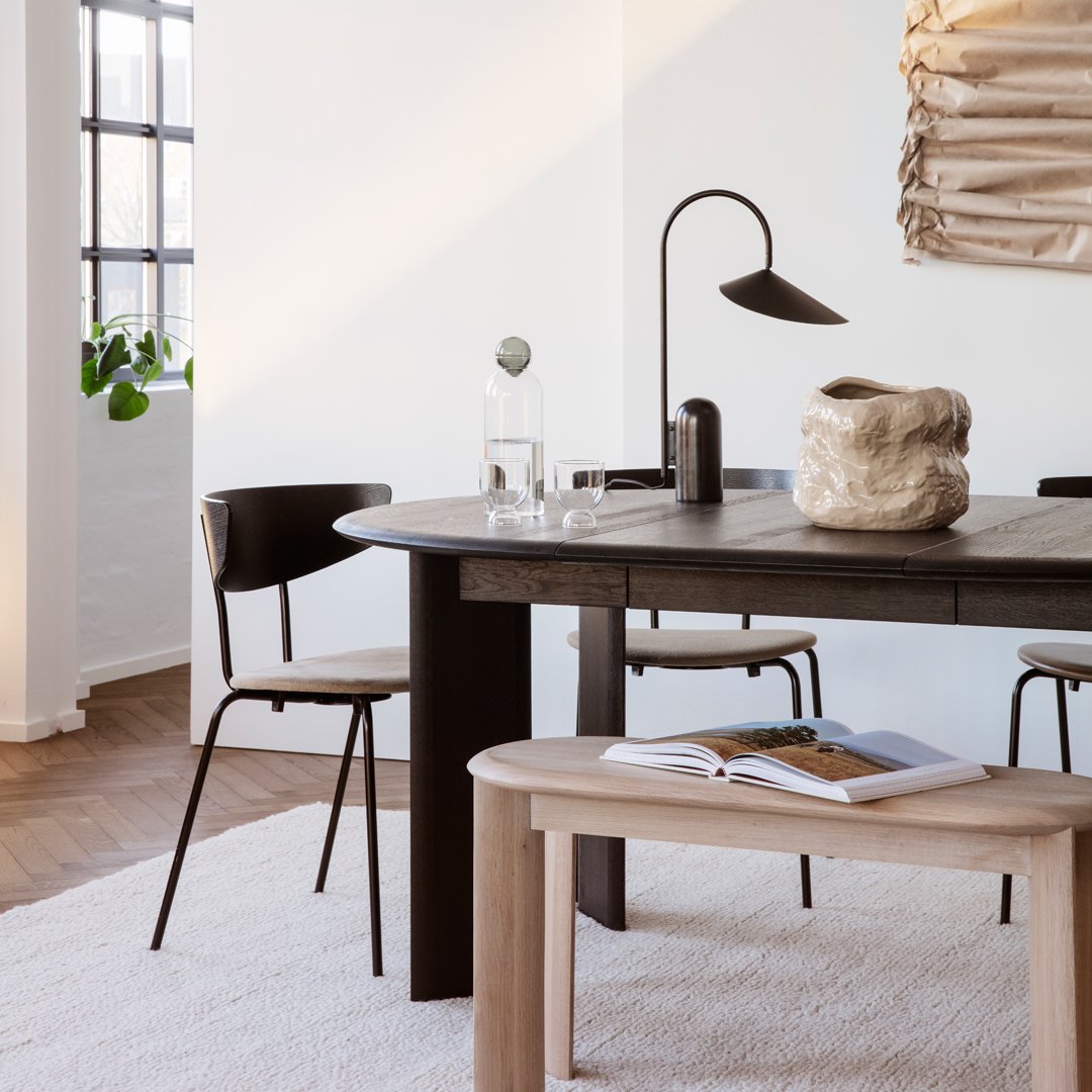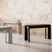 The flat, broad legs of our Bevel Bench update the traditional seat design, made from solid oak and offered in a modernist black oiled finish. The versatile bench has gently rounded edges that perfectly complement the series’ dining table. It can also be put to use as extra seating in a hallway, living room or bedroom.