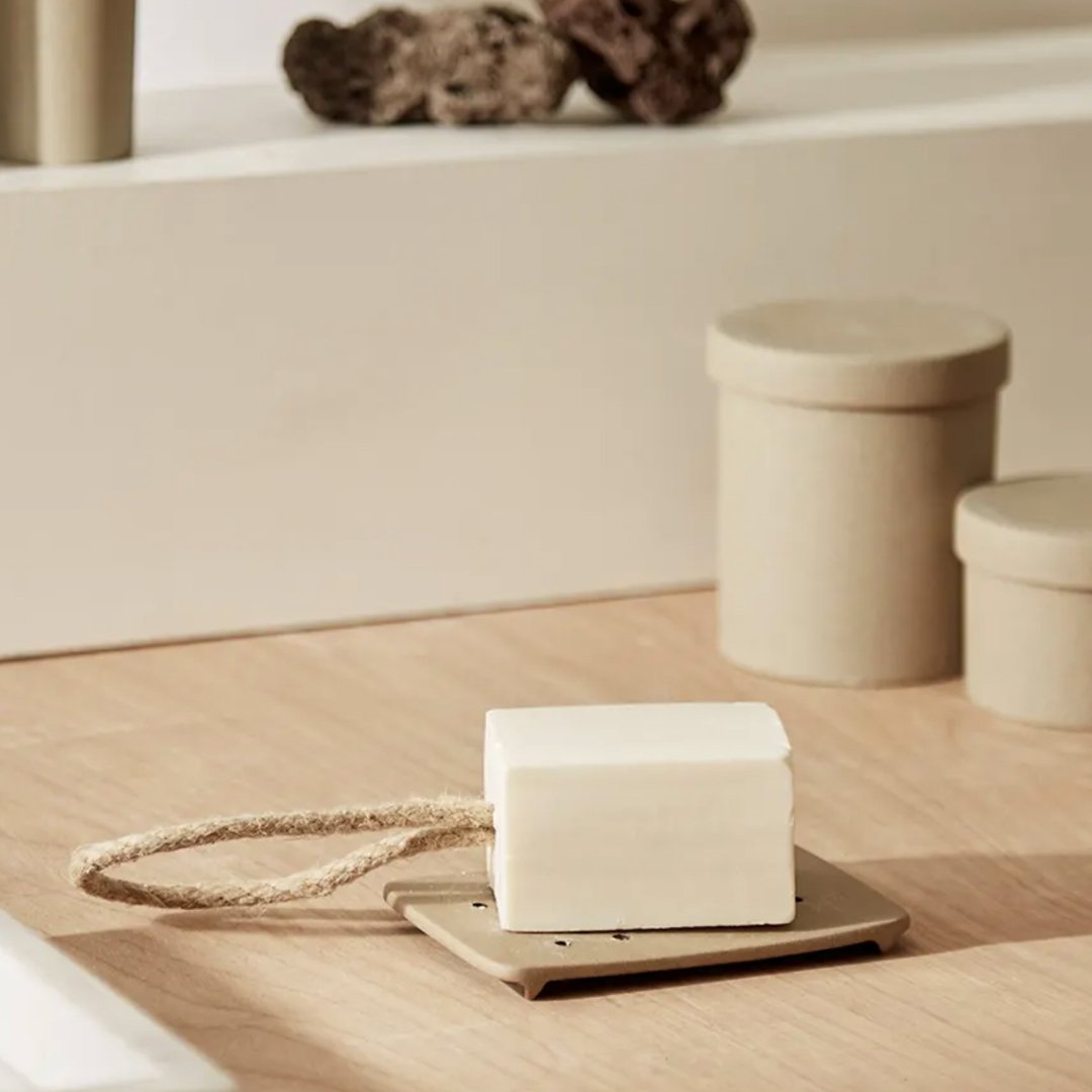 Part of our Bon series of containers inspired by Japanese minimalism, this soap tray is made from raw, sand-colored porcelain that’s been shaped to fit neatly inside the series’ Petite Tray. Drain holes ensure excess water trickles away and gently rounded corners underpin the organic feel of the natural material.