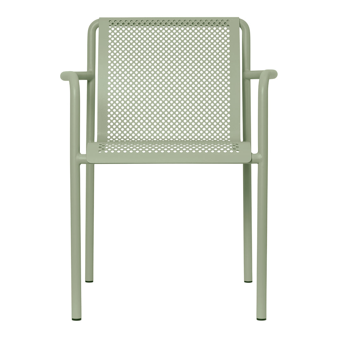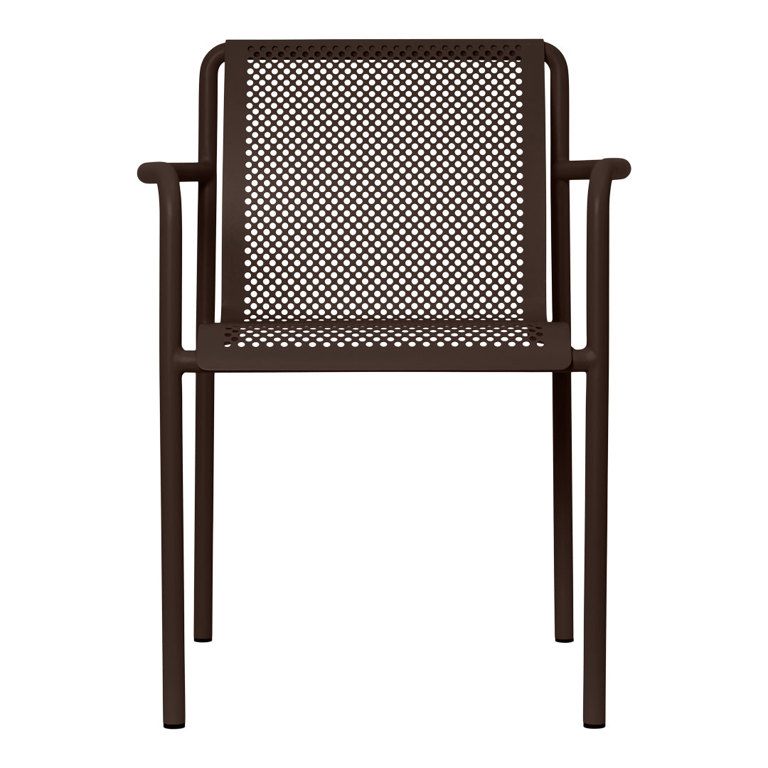 Inspired by the beauty of sunlight filtering through leaves, the Dapple Collection brings a sense of tranquility to outdoor spaces. The Dapple Armchair is crafted from powder coated galvanized steel that ensures durability and protection from the elements while maintaining an elegant aesthetic. Embodying a modern, pared-back aesthetic, this stackable chair is a simple yet impactful addition to your outdoor space.