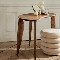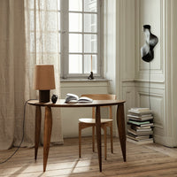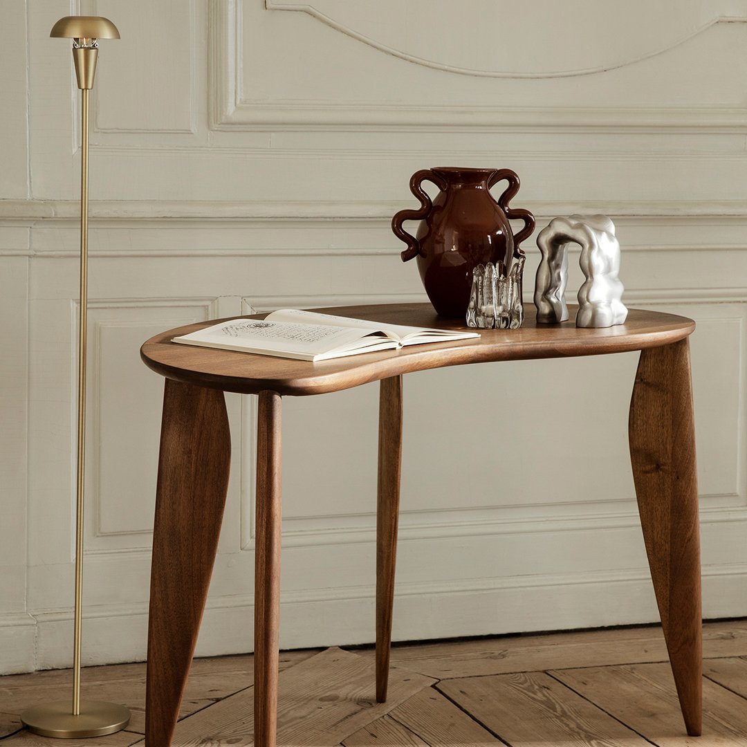 Made in solid FSC-certified European Walnut, the Feve Desk has an organic, delicate expression. As a reference to the distinctive shape, its name comes from the French word Feve, which means bean. The legs are carved into stretched elliptical shapes that emphasise the desk’s elegant, feminine silhouette and balance the design. The Feve Desk requires little space and can be used both as a desk, an entrance console or a make-up table.