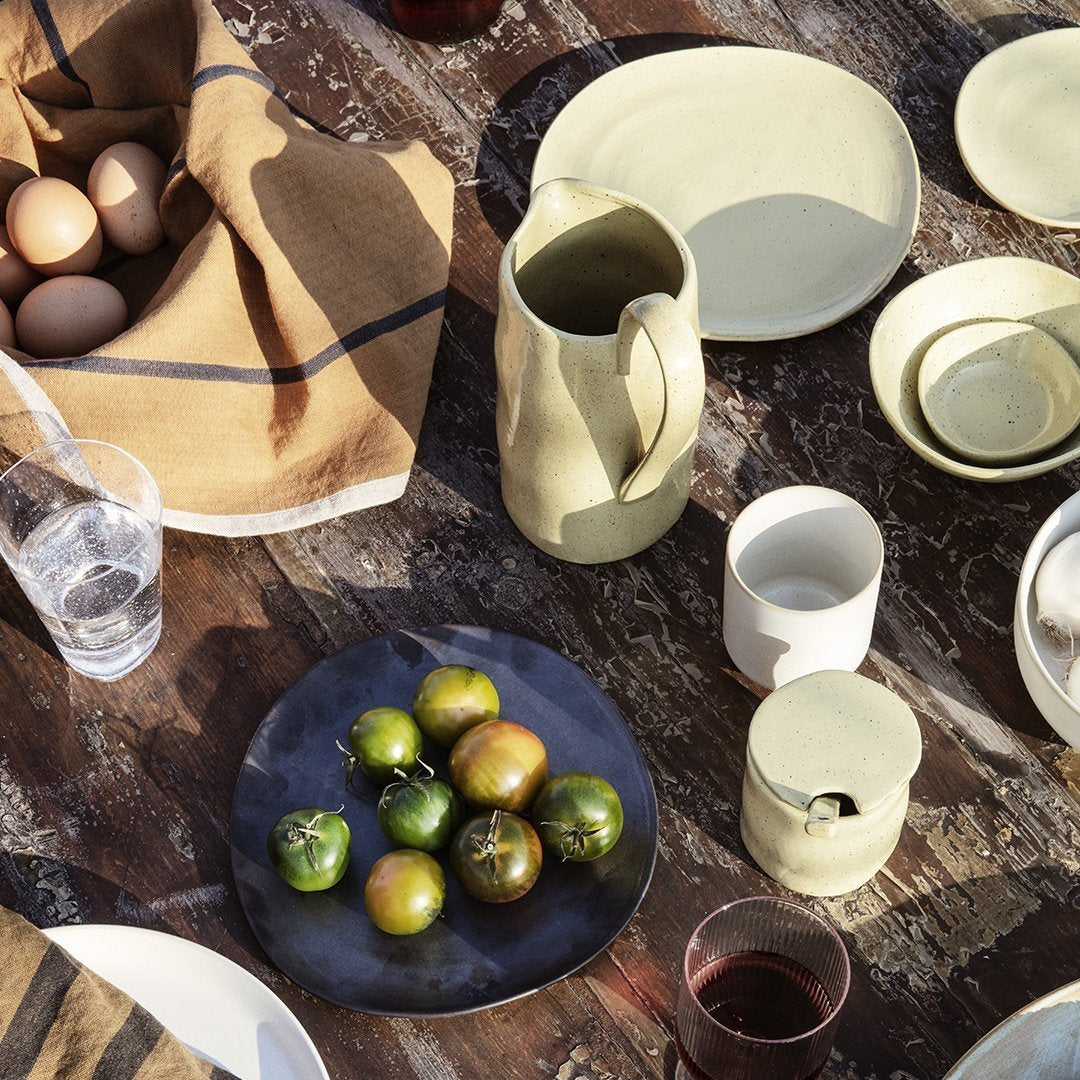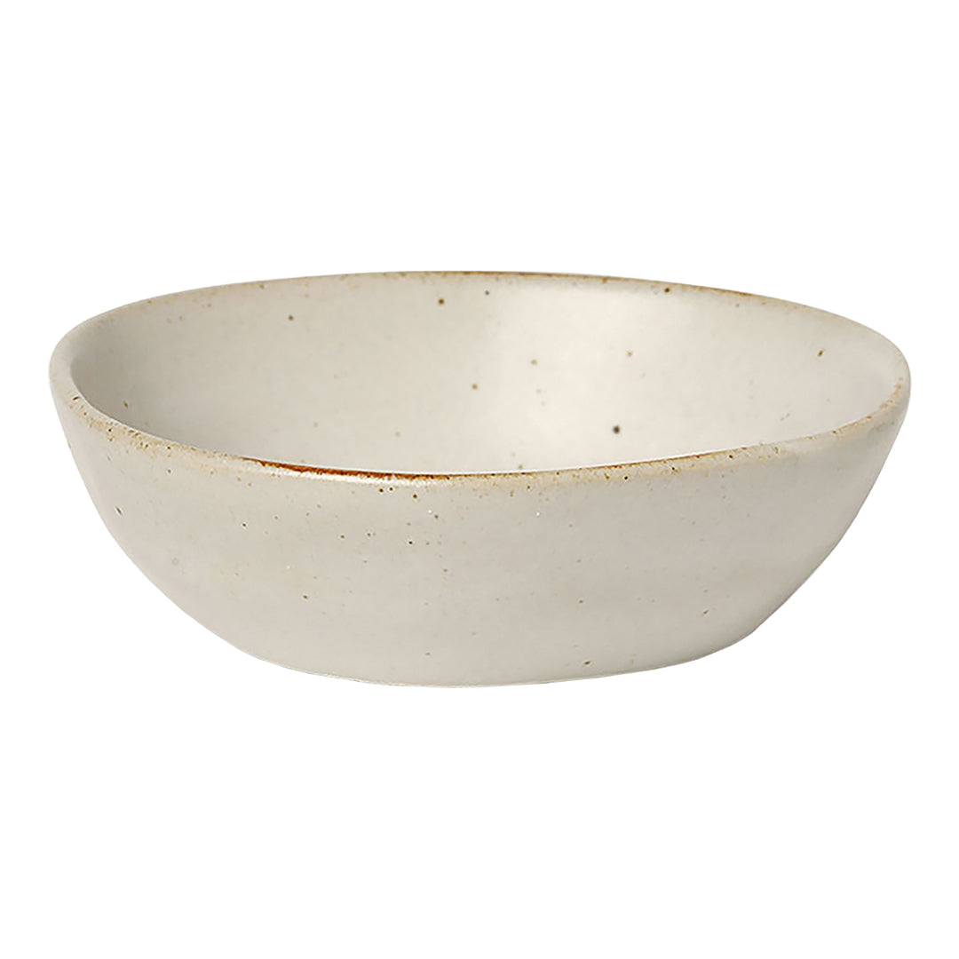 Flow is a series of perfectly imperfect tableware made to modern sensibilities using traditional craftsmanship techniques. All the items are detailed with a semi-matte glaze for a unique expression. This small bowl is as perfect for serving snacks or desserts, as it is used as a catch-all on a desk or dressing table for small items such as keys or Jewelry.