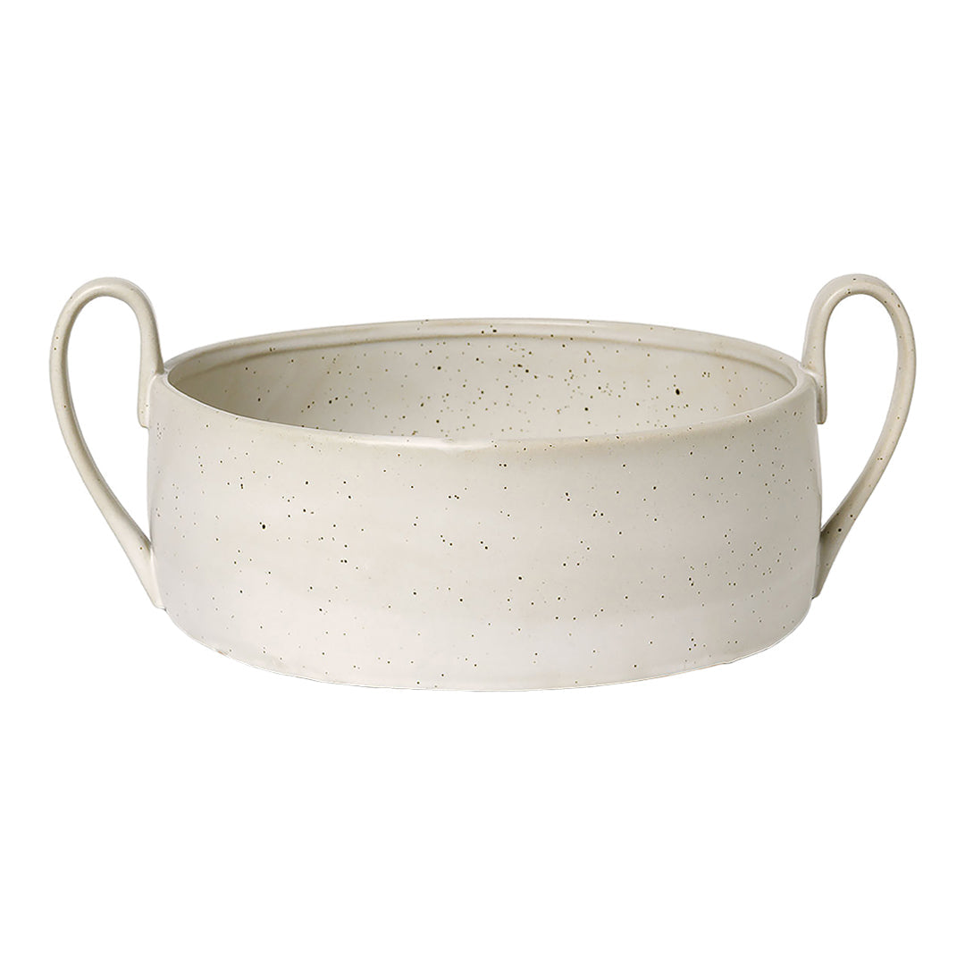 Flow is a series of perfectly imperfect tableware made to modern sensibilities using traditional craftsmanship techniques. All the items are detailed with a semi-matte glaze for a unique expression. The simple, clean lines of this large bowl are offset with two distinctive elongated handles that are sure to make this the central piece of any table setting.