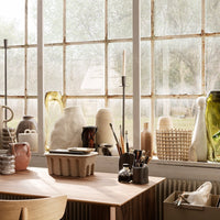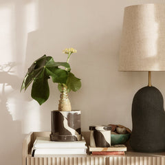 The Inlay series is a collection of stoneware that features a distinctive, two-tone mix of clays that create a large-scale, marble-like pattern – each of which is unique to the individual piece. A clear, high-gloss glazing ensures a smooth finish. This all-purpose container can be used for everything from storing dry goods in the kitchen to stationary in your home office.
