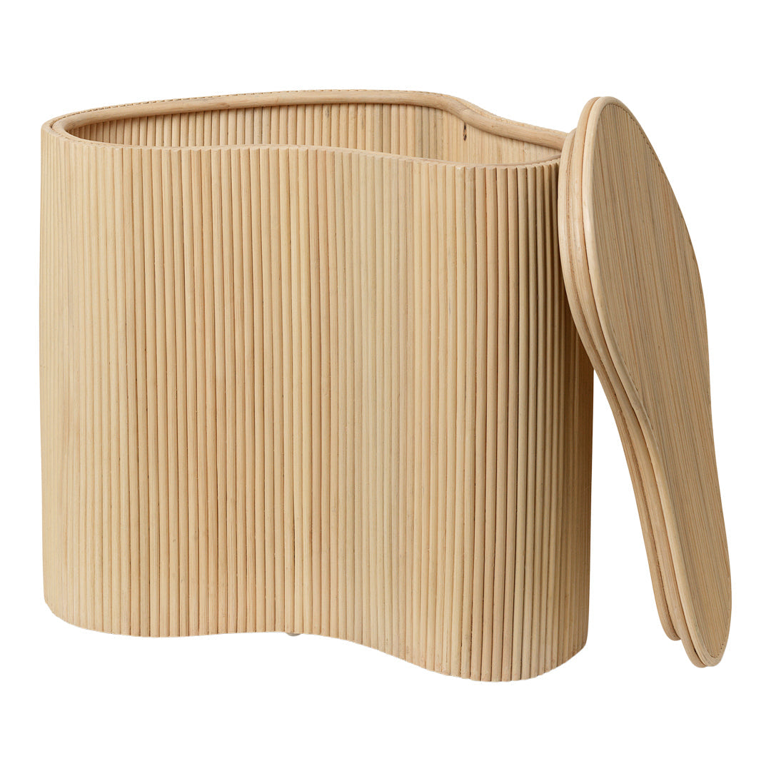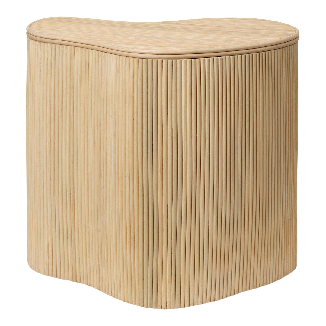 Characterized by its soft, organic shape and practical lid, the Isola Storage Table is both suitable as a spacious storage container and a bedside table. As the day is coming to an end, the table can also be used to tidy up the kids' room to make it ready for new adventures. The inside of the Isola Storage Table is made from MDF and plywood, while the top and front are made of rattan.