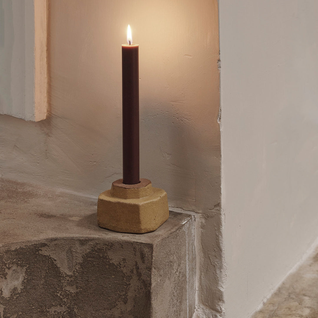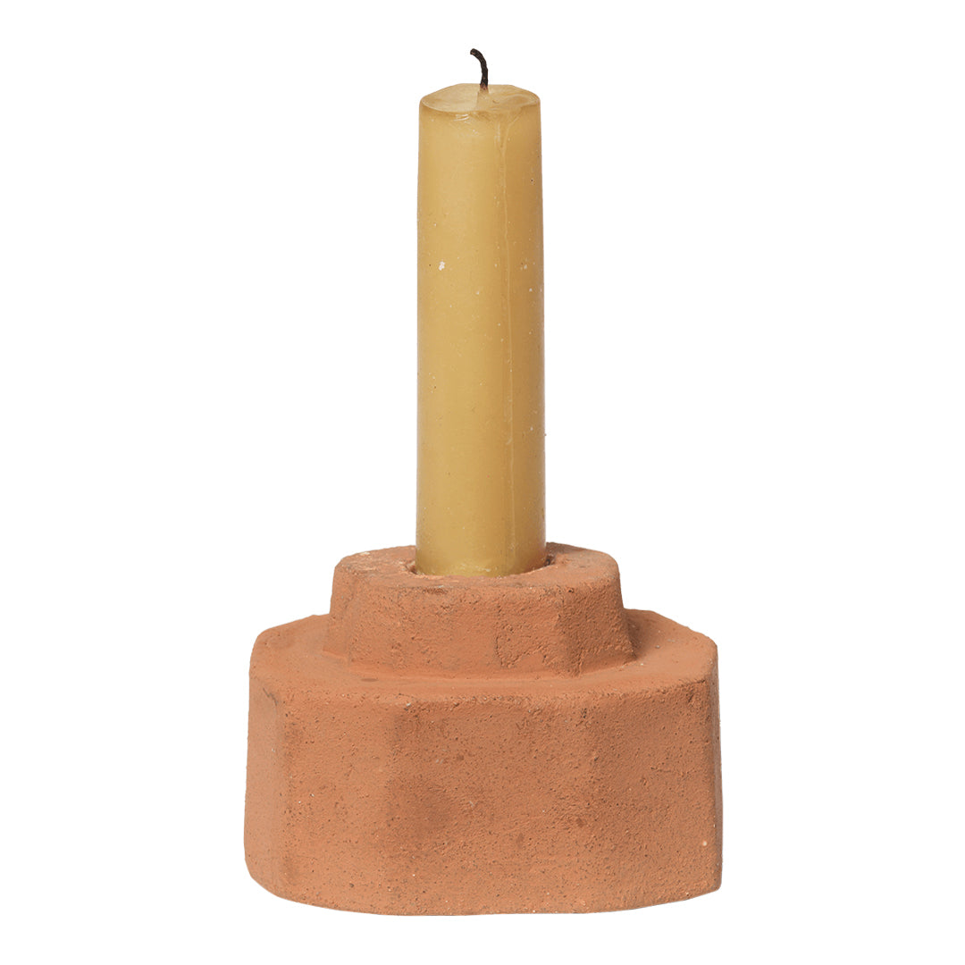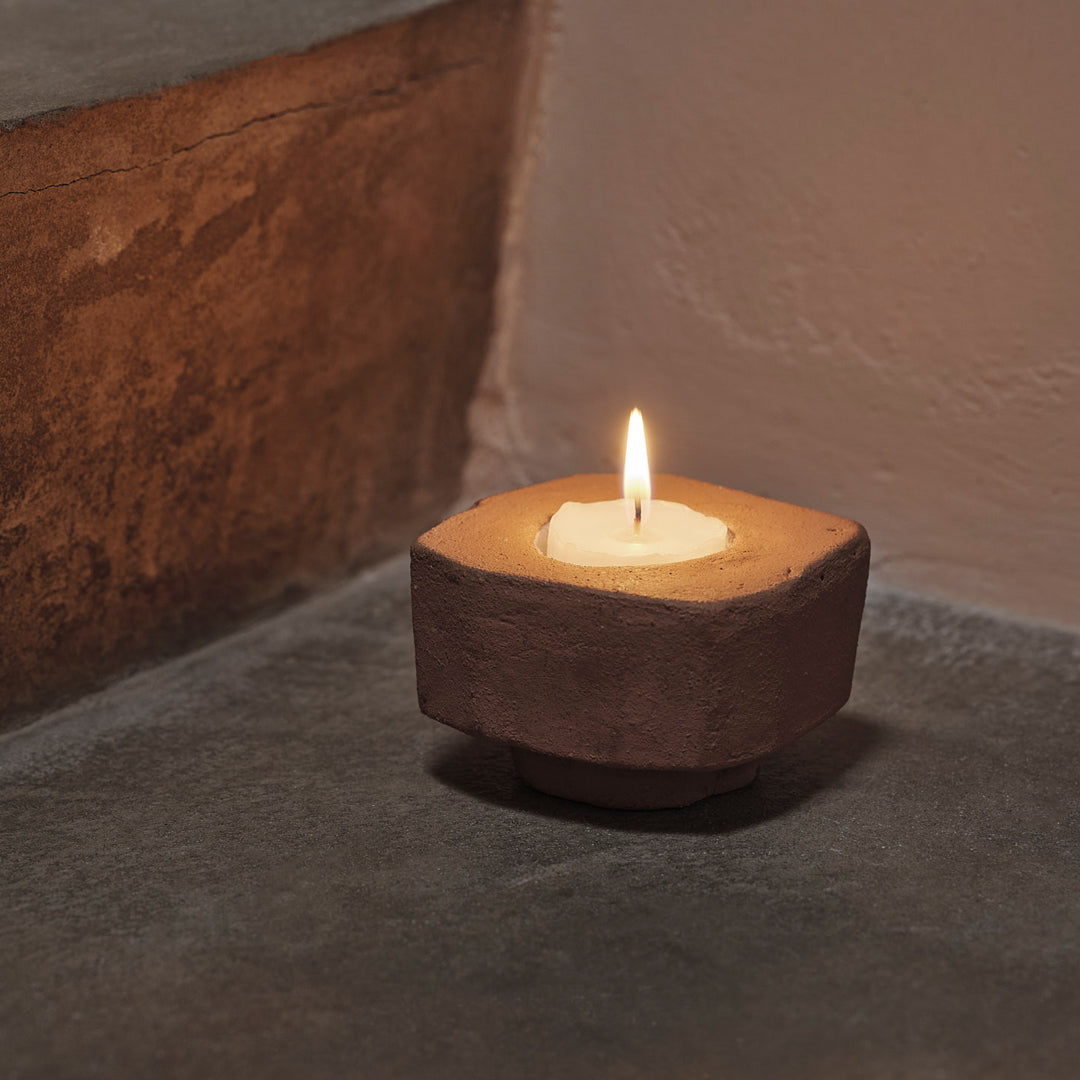 The Kurinu Family showcases terracotta objects inspired by the traditional Japanese kurinuki technique, where each piece is meticulously carved from a solid block of clay. The Kurinu Candle Holder is crafted to hold a tapered candle, creating a warm, inviting ambience in any space. Showcasing exceptional versatility, this piece can also be flipped to display a standard tea light, blending practicality with artisanship.