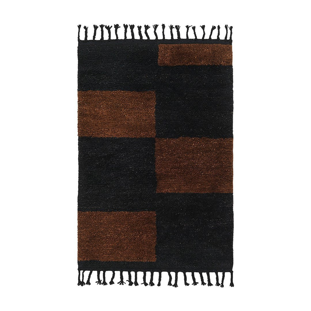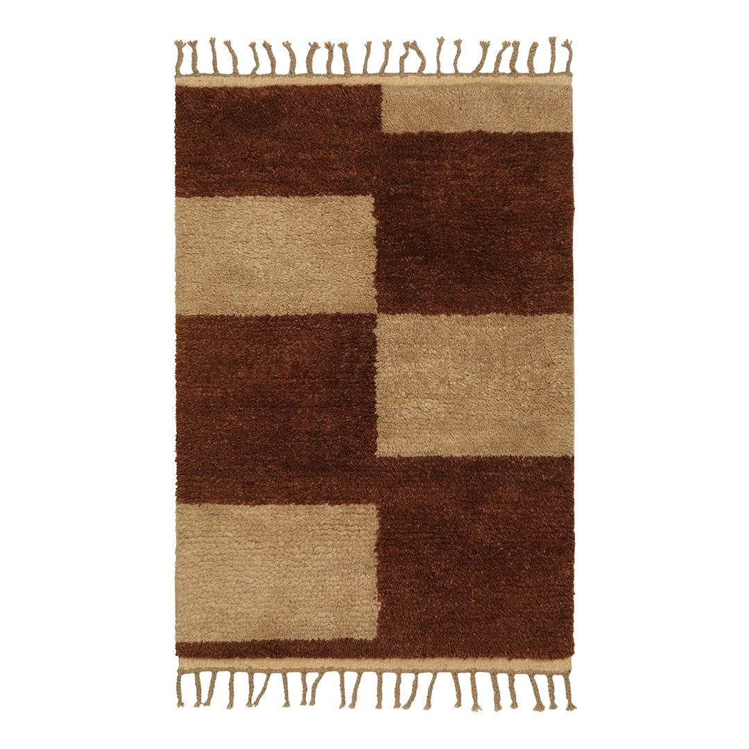 The Mara Knotted Rug is a contemporary take on a classic woollen rug with a bold checked pattern and decorative fringes. Being hand-knotted in New Zealand wool, the rug has a soft, tactile expression with a graphic artwork. The result is a daring yet balanced design that will give any room a soft element of contrast.