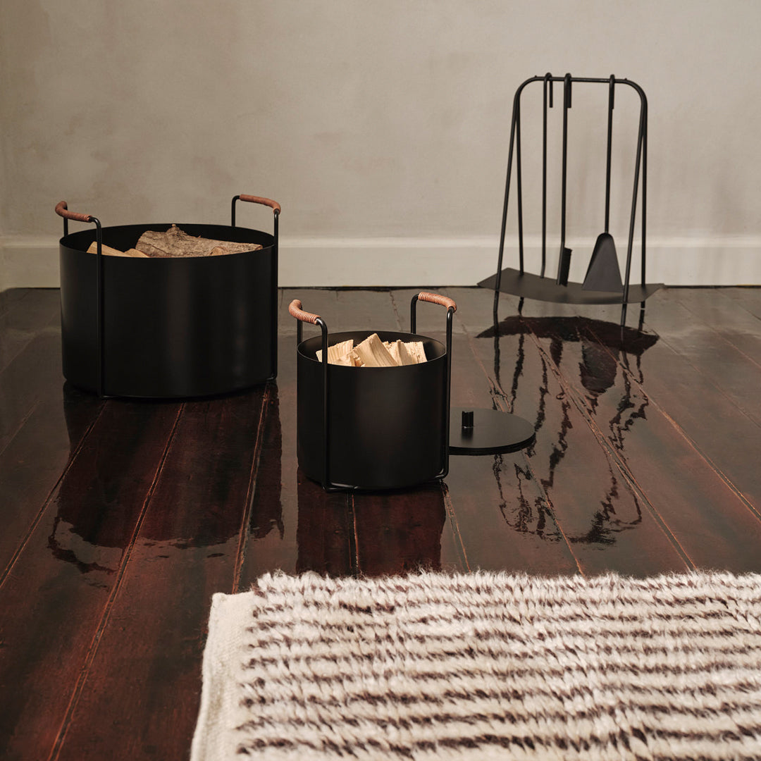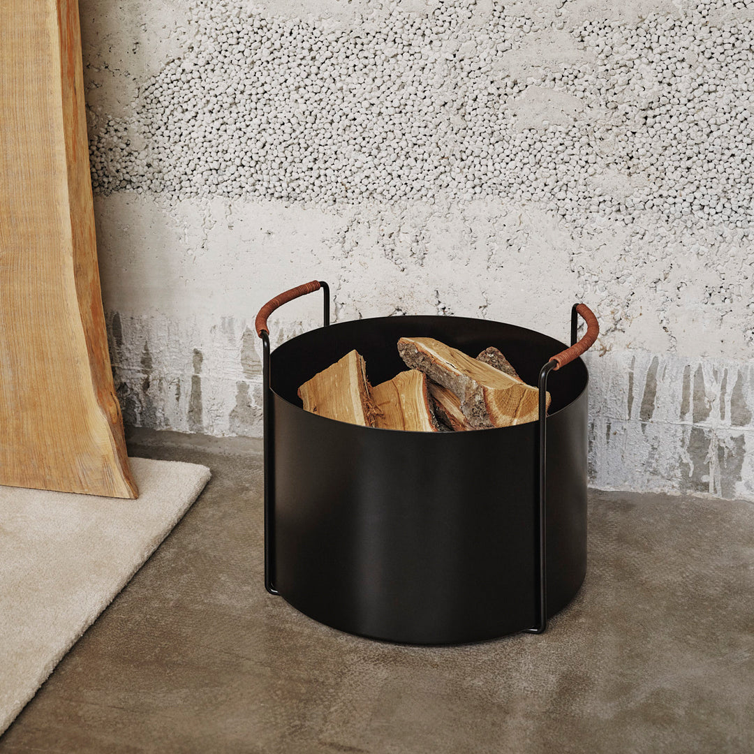 Combining versatility with an elevated design language, the Port Firewood Bucket belongs to the Port Series. Crafted to complement any fireplace setting, it boasts sleek lines and a minimalist aesthetic. A leather-clad handle emphasizes its design and ensures a comfortable grip. Whether storing logs for a cozy fire or seeking to elevate your fireplace's appeal, this metal firewood bucket is an indispensable addition to your home.