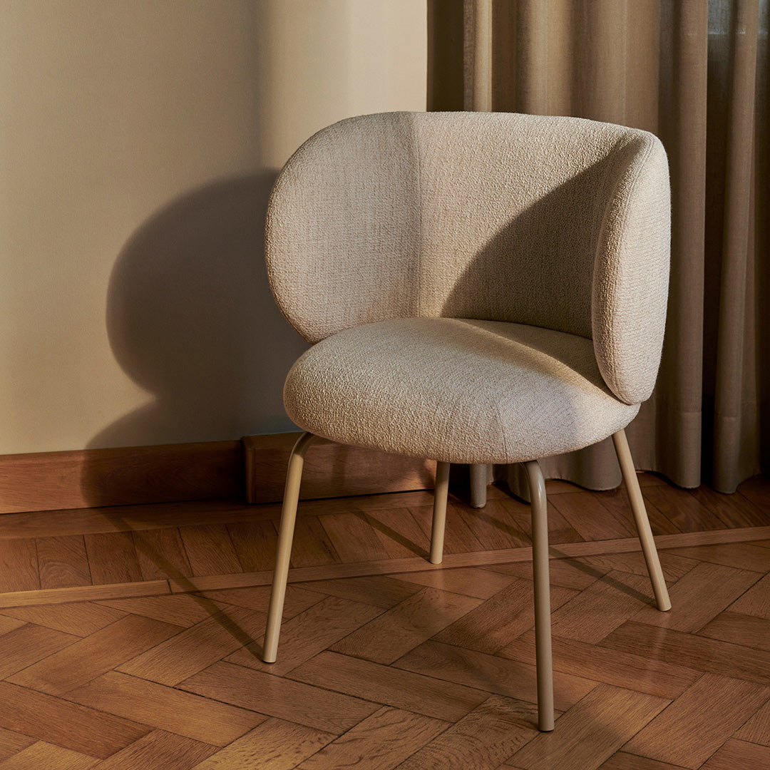 The Rico collection welcomes curves and volumes into a classic design defined by soft lines and an embracing expression. Featuring four elegant tubular steel legs as the base, the Rico Chair presents a light and refined addition to the Rico family. With its slim and approachable design, it will fit in almost everywhere - whether this is in a small kitchen nook or in a more formal setting.