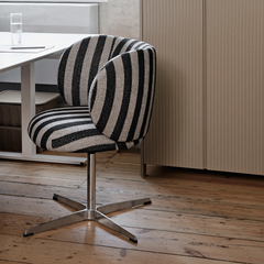 The Rico collection welcomes curves and volumes into a classic design defined by soft lines and an embracing expression. Featuring a functional swivel as the base, the Rico Dining Chair presents a refined addition to the Rico family. Place it around the dining table and offer your guests a comfortable, inviting seat during long dinner parties, or use it as a desk chair in your own home or at the office. This item is part of our made to order customisation concept. The materials have been handpicked in order to create this custom piece – the only one of its kind.