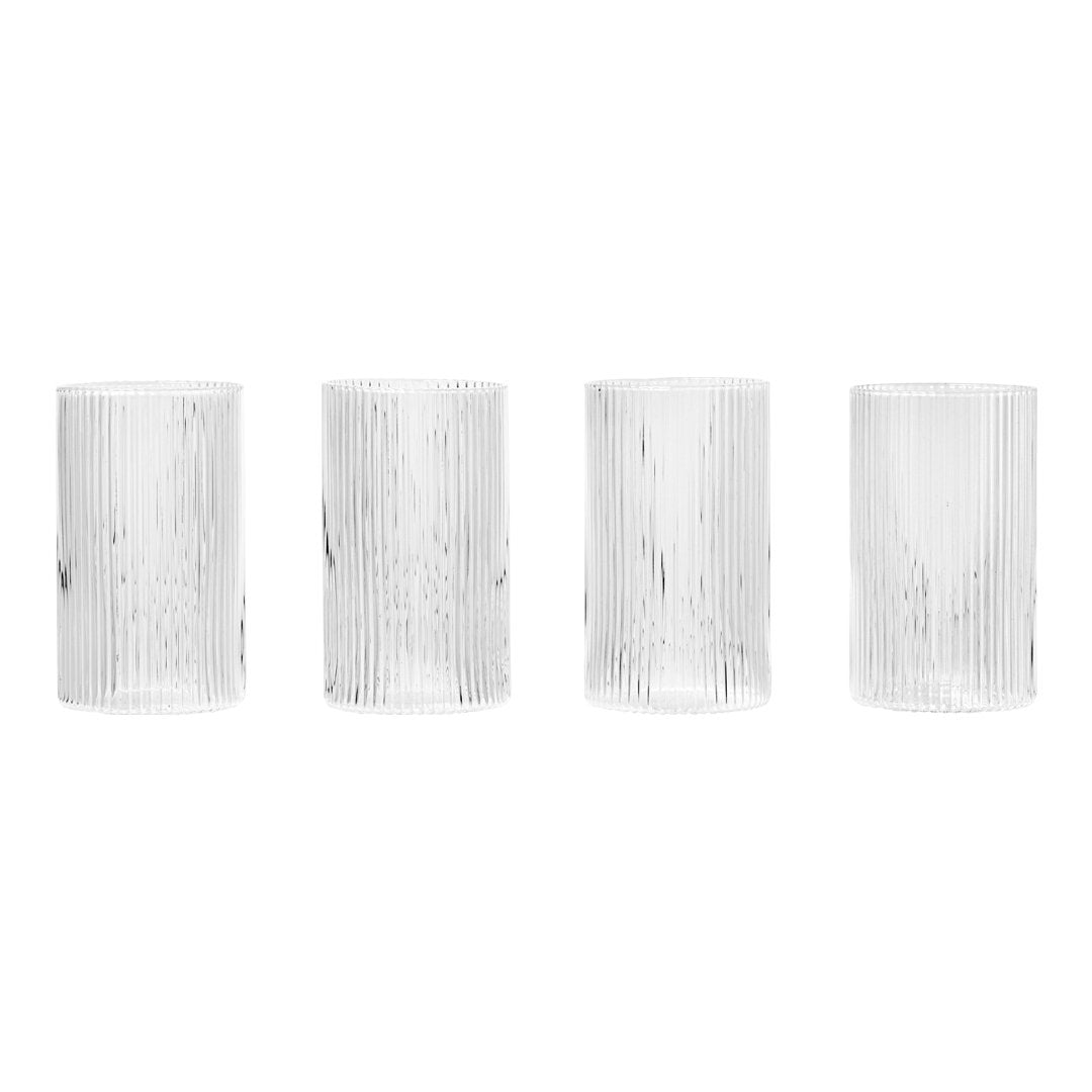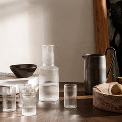 Inspired by small, delicate glasses traditionally used in French cuisine to serve little appetisers and desserts, this set of four mouth-blown glasses have a rippled surface that is distinctive to the series. Each glass can also be used as a lid for the Ripple Carafe and make an elegant addition to the Ripple collection at your table setting.