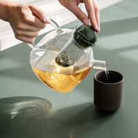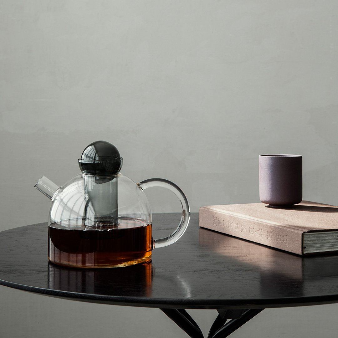 Treasure a moment of tranquility with the Still Teapot based on traditional tea rituals with a focus on simplicity and balance. The transparent and colored glass makes the brewing of tea the heart of the pot, while the rounded glass lid reflects the aspect of balance, as it is designed to spin around itself instead of rolling off the table.