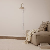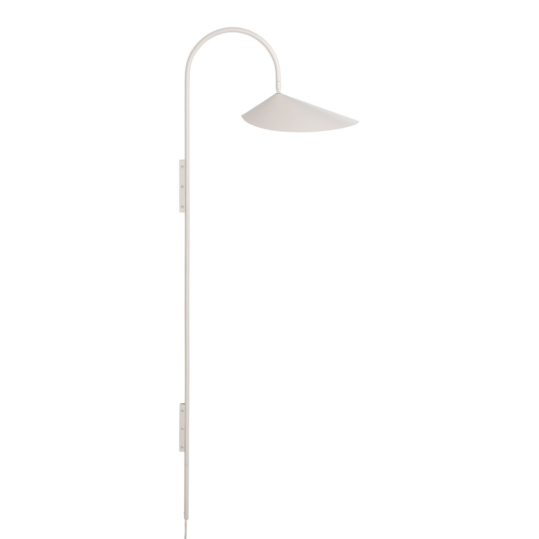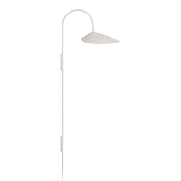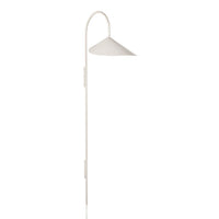 A taller version of our Arum Wall Lamp, this iteration has a slender silhouette, created from tubular, beige powder-coated metal that conceals a textile cord. A hybrid between a floor lamp and a wall light, the elegant beige design lends personality to a space, illuminating it with ambient light.