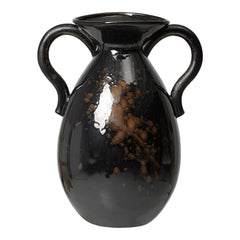 Recalling classic shapes from traditional pottery, the Verso Floor Vase has an irregular, feminine form with artfully oversized dimensions and a pair of distinct, curved handles. The vase is made from stoneware with a reactive, high-gloss glaze that has been applied by hand, making each individual piece unique.