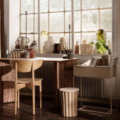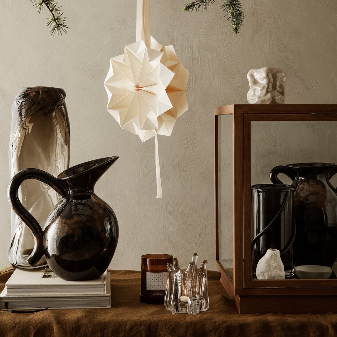 The mouth-blown and oversized Water Swirl Vase recalls a whirl of cascading liquid. With its translucent colored glass, the vase achieves a light and effortless, almost dancing, expression despite being crafted from solid, massive glass. Fill the vase with flowers or stalks, or style it solo and enjoy how the sun filters through the transparent glass. Enjoy the unique twists and curves of each individual piece, as no two vases are identical.