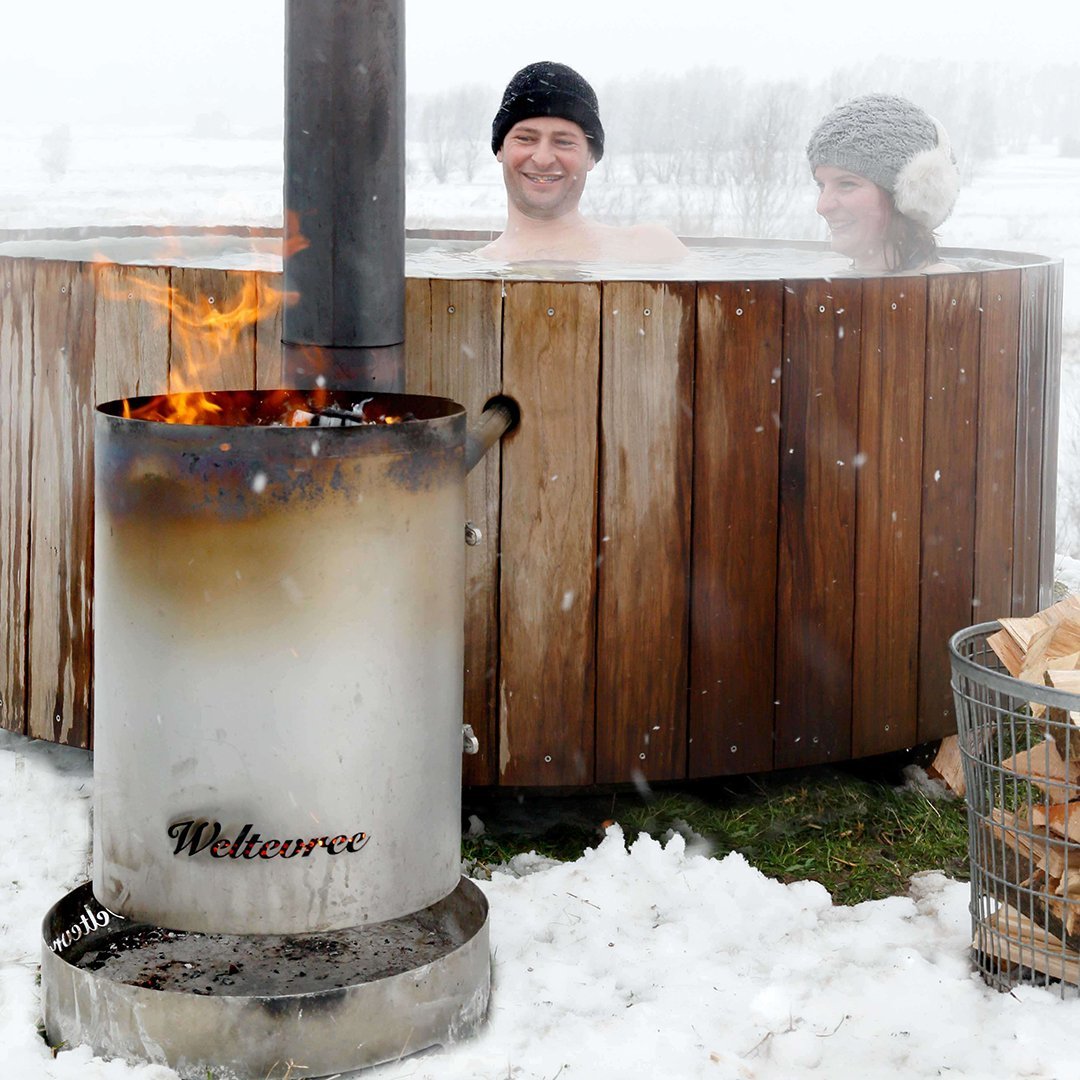 The Dutchtub Wood is the brother of the Dutchtub Original. But as brothers often are, they are completely different. Unlike the colored Dutchtub Original, the Dutchtub Wood has a natural look: the tub is covered with wood panels, allowing the tub to completely blend into its surroundings. The Dutchtub Wood is one of Weltevree's iconic wood-fired hot tubs. The outdoor natural-look tub can accommodate up to four adults. The Dutchtub comes with an insulation mat to heat and protect the tub faster outside use. In addition, you will receive a wok, which can be used to cook over the heating coil. Relax in the warm water, enjoy being outside and prepare something delicious in the wok at the same time.