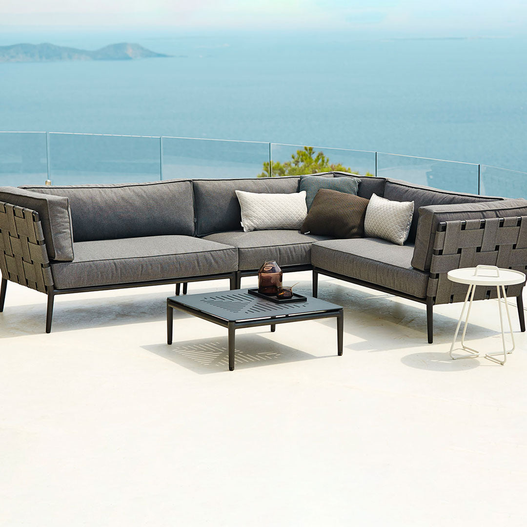 Conic Box fits perfectly with all Conic sofa modules and can be placed exactly where you want it in your lounge group. The product is designed to create an elegant table that radiates a warm feeling. The table top is made of teak, which is approved and cultivated according to the SVLK certification system. Conic box table is a multifunctional table which can also be used for storage of scatter cushions, blankets or books and magazines. The table requires minimal maintenance with teak oil if you want to preserve the colour and glow. Alternatively, the tree can be left without maintenance, which gives the tree a light grey patina expression after some time. Use the product as a side table for a glass of wine or a cup of coffee.
