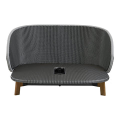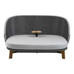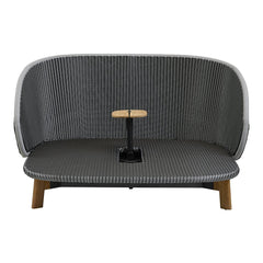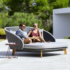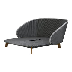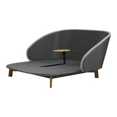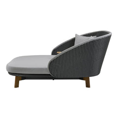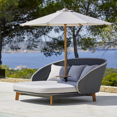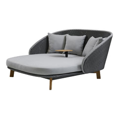 Peacock daybed is a beautiful visual furniture with comfort as the keyword. Peacock is a modern furniture designed by Foersom + Hiort-Lorenzen MDD. Peacock is available in Cane-line Weave ®, which makes Peacock ideal for outdoor use in any climate as it is temperature and UV-resistant. It comes with a cushion set + 4 large back cushions (60x60 cm.) The Daybed cushions comes in an outstanding colour; Cane-line Nattà © light grey. The mix of two colours in the weave gives a very unique look. The Peacock Daybed comes with a small teak table, and can also be combined with our Classic parasol as an acquisition.