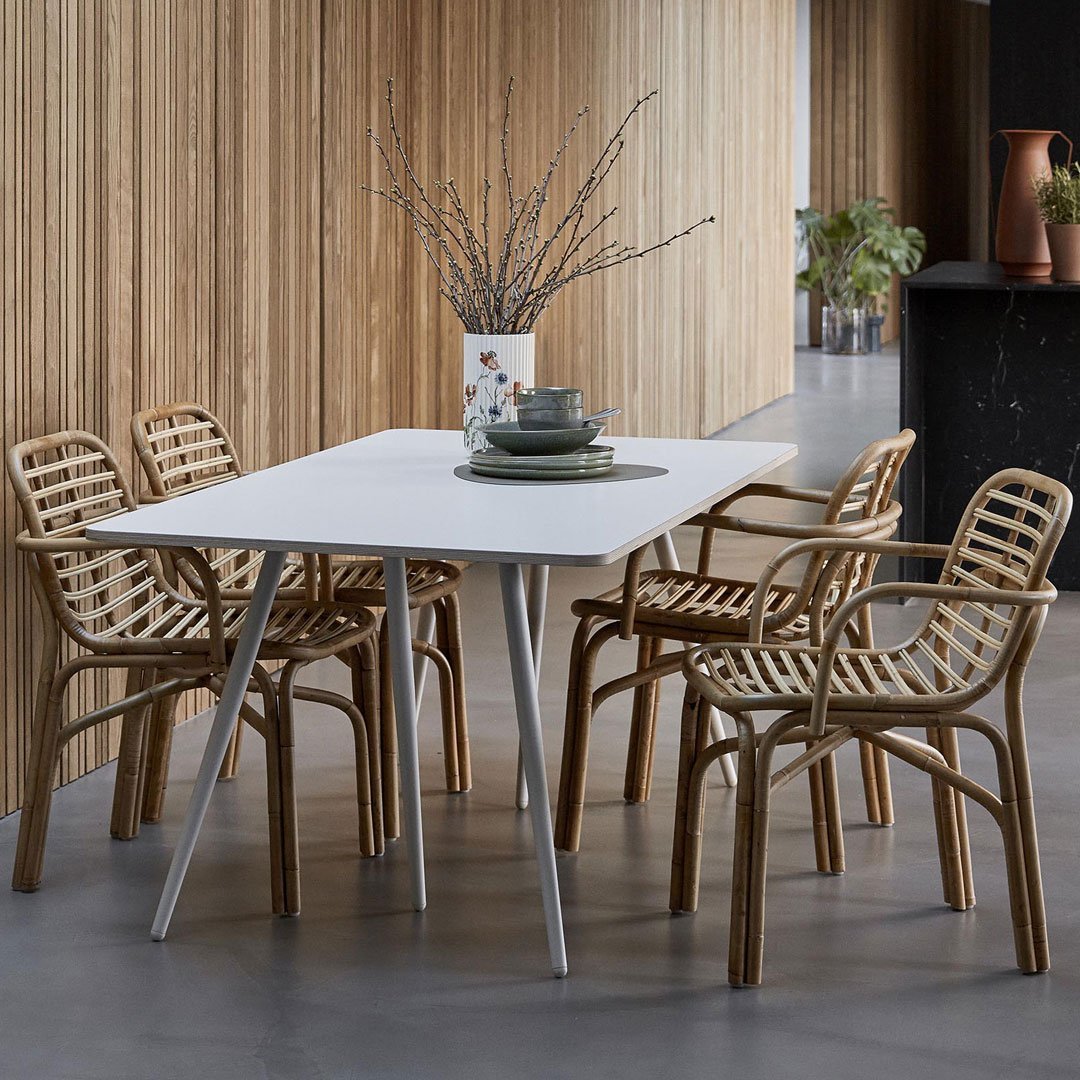 The dining chair Peak is designed by the Danish duo Foersom + Hiort-Lorenzen MDD. The duo has a great respect for the nature and the traditional craftmanship. Peak is made by the sustainable material rattan, which gives the chair an organic and unique look. Rattan is a flexible and solid material, which can be shaped in the form that you desire. The design is simple and unique, because you see the raw material and that is what makes every chair unique.
