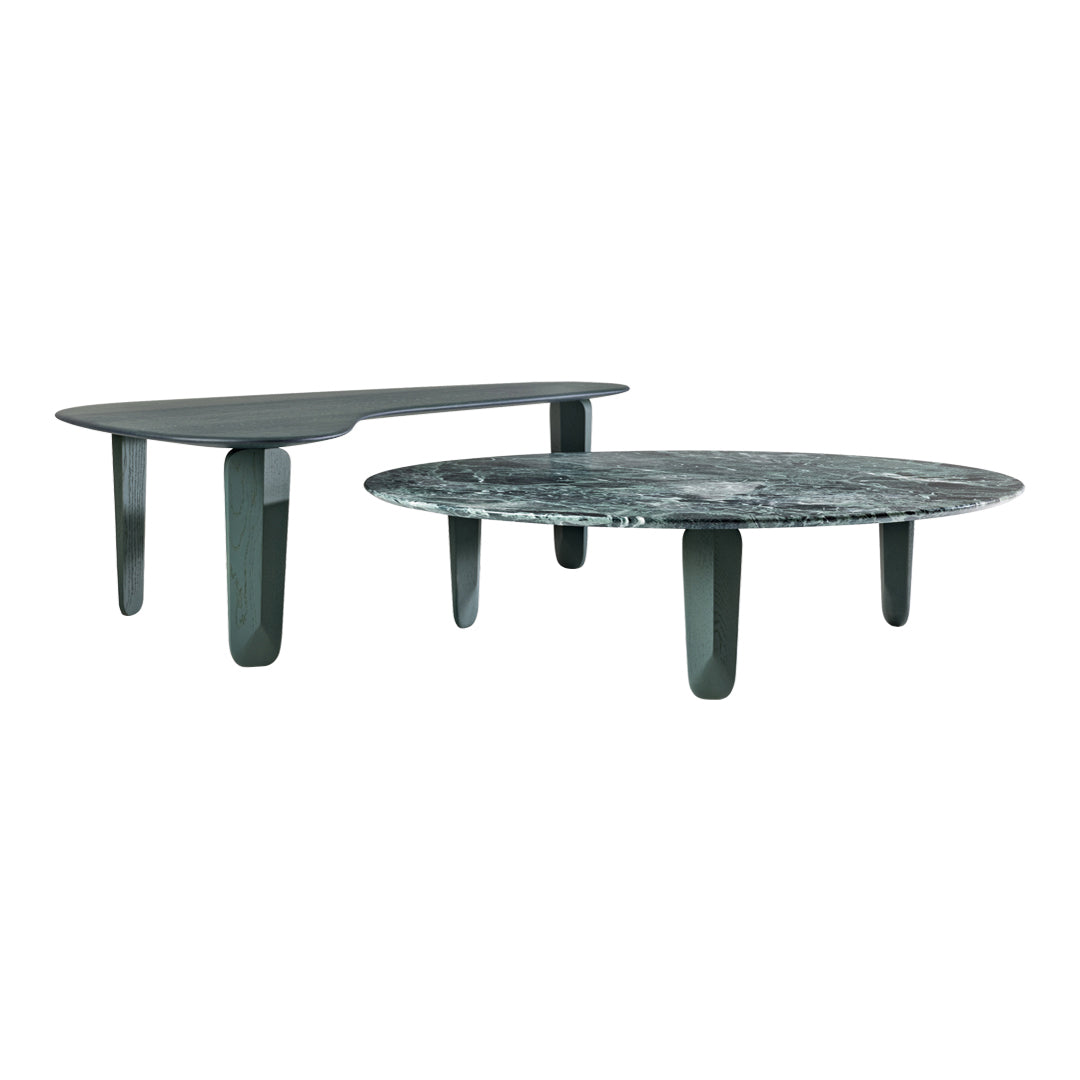 Together with the solid wooden legs, an exciting interplay of cool stone and warm wood is created. Both natural materials have an individual grain due to their natural origin. The two heights allow for a variety of shape and material combinations. The lounge table is an eye-catcher in both private and contract settings.