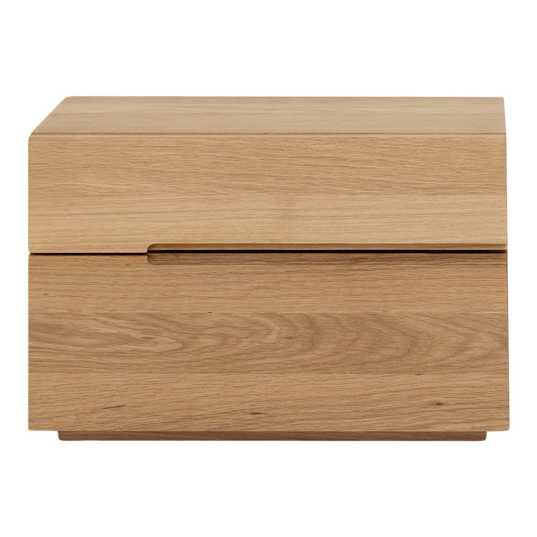 The flat cubical bedside table NIGHTSTAND with its two drawers offers ample storage options near the bed. Its unobtrusive design combines well with the beds DOZE, SIMPLE, SIMPLE HI, SNOOZE and IN HEAVEN.