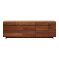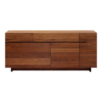 The Side Sideboard series is based on the Modulor proportions system developed by Le Corbusier. The proportions are a deliberate attempt to replace the rigidity of symmetry with an asymmetrical arrangement which feels correct.