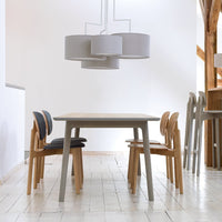 The expressive wooden frame incorporates two floating circles, the seat and the back of the chair. The frame consists of solid wood, the seat and back shell are made of moulded wood and can be upholstered. The seat upholstery is always fully upholstered, the back shell with and attached cushion. ZENSO is available with either a wooden seat and back shell, with an upholstered seat and back shell or with an upholstered seat and wooden back shell.
