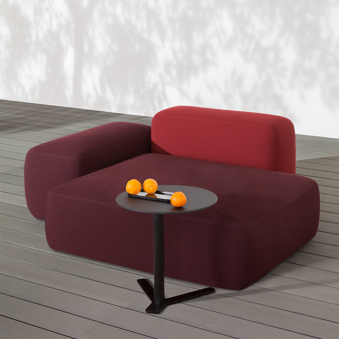 Modular seating system composed of different elements in fire-retardant foam, upholstered with breathable, water-proof fabric and with a removable external fabric resistant to UV rays. Linking brackets in powder coated stainless steel Aisi 304.