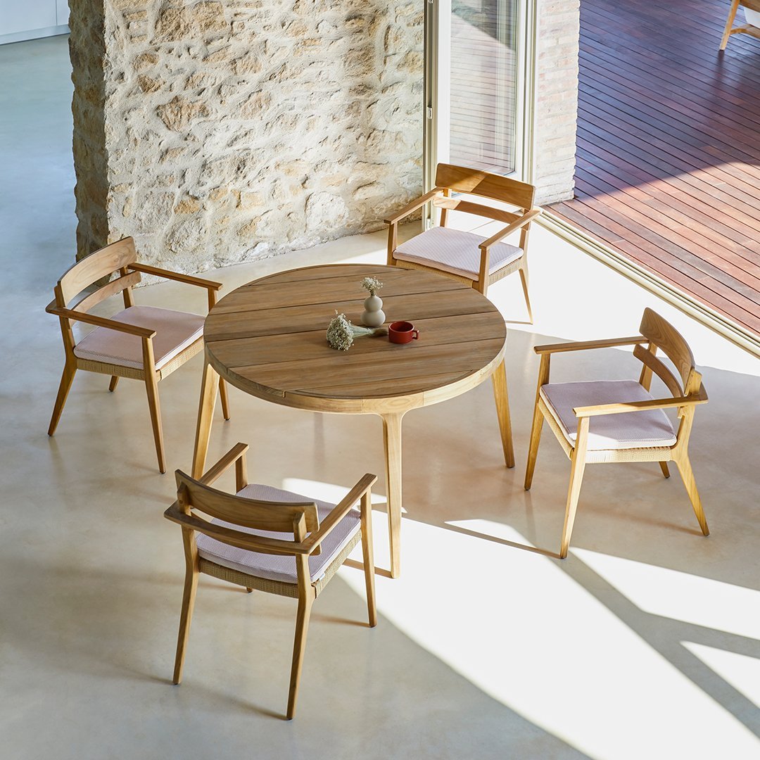 The Paralel collection, designed by Gabriel Teixido, is serene and timeless. A contemporary classic destined to endure that generates a visual impact due to its beauty and elegance. A design rich in details, which combines wood and rope to provide the necessary comfort in outdoor and indoor spaces. This collection presents fourteen pieces made of teak wood and synthetic rope. Chairs, armchairs, sofas, armchairs and tables, with contemporary aesthetics and great comfort, whose rear part gives it its characteristic and differential point.