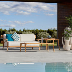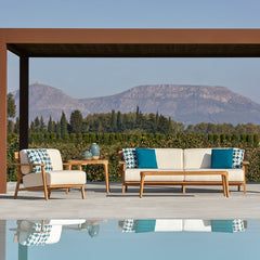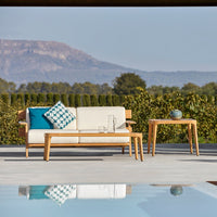 The Paralel collection, designed by Gabriel Teixido, is serene and timeless. A contemporary classic destined to endure that generates a visual impact due to its beauty and elegance. A design rich in details, which combines wood and rope to provide the necessary comfort in outdoor and indoor spaces. This collection presents fourteen pieces made of teak wood and synthetic rope. Chairs, armchairs, sofas, armchairs and tables, with contemporary aesthetics and great comfort, whose rear part gives it its characteristic and differential point.