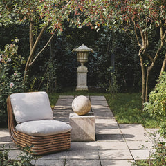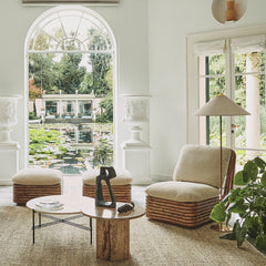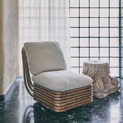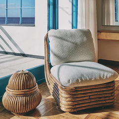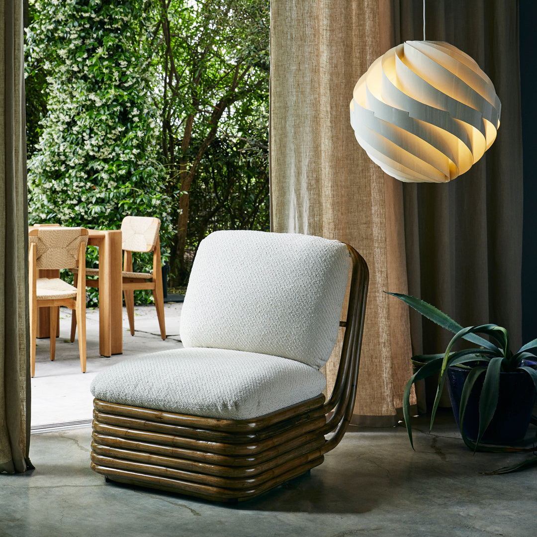 Comprising a lounge chair, three-seater sofa, ottoman and floor lamp – all crafted from rattan – the Bohemian 72 Collection embodies Crespi’s career-long aim to create furniture that seamlessly unites indoor and outdoor living. She never allowed curtains or screens to block the natural flow of light or air and had what her daughter has described as ‘a deep sentiment for the cosmic energy of nature.’ Suitable for indoor or outdoor use but in a covered area where the chair will not get wet.
