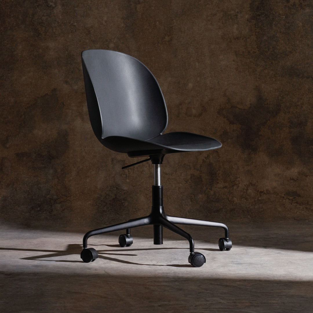 The Beetle Chair from GamFratesi was an instant classic when it launched in 2013, and the many new configurations that have been added since have made it suitable to almost any space and type of usage. Reinterpreting the characteristic elements of the beetles’ sections - shape, shells, rigid outsides and soft insides – GamFratesi conceived of a chair that is at the same time striking, refined, and sublimely comfortable. Now, the addition of a pneumatic height-adjustment cylinder to the 4-star meeting chair’s base, with or without casters, makes it even more flexible, able to adapt to the diverse needs of the modern workplace, whether that be at home, an office, or somewhere in between.