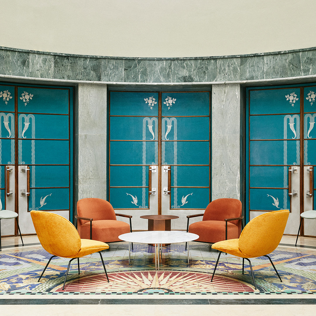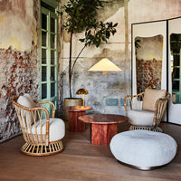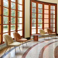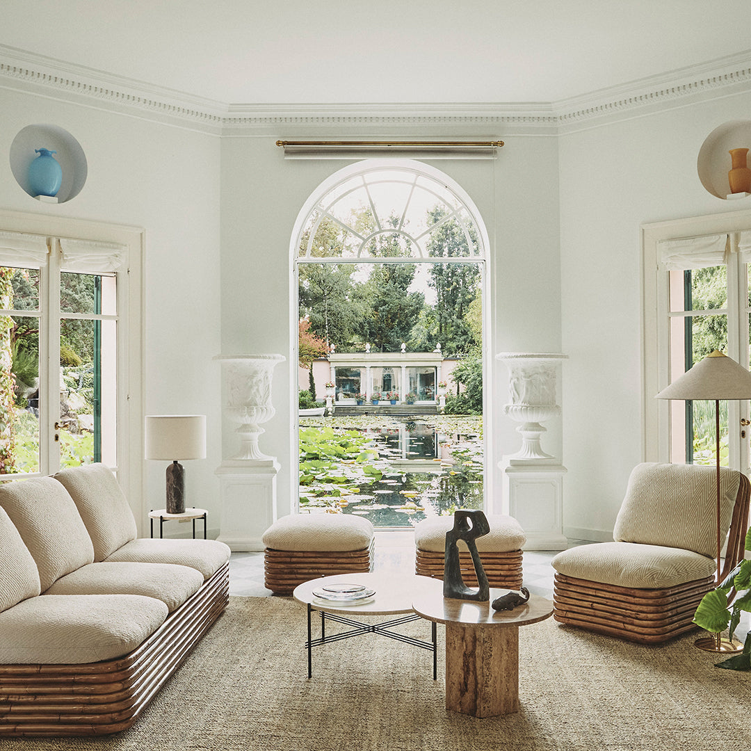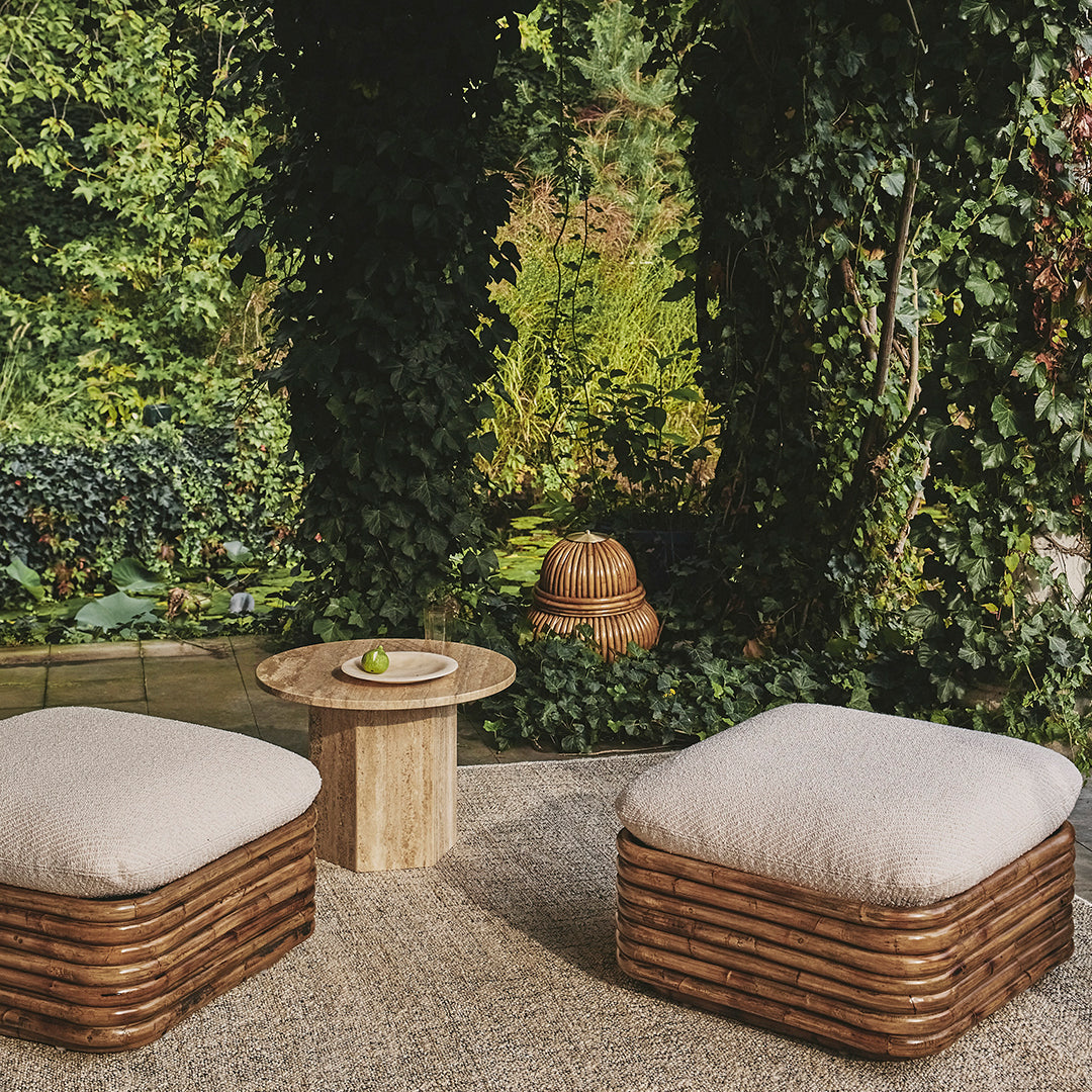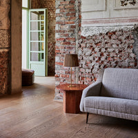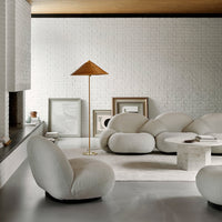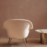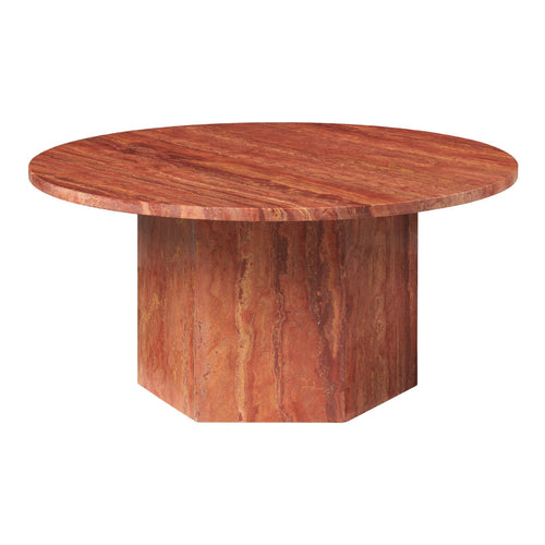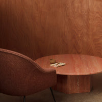 GamFratesi designed the Epic Coffee Table for GUBI as a sculptural piece of furniture inspired by Greek columns and Roman architecture and named after the epic poems of ancient times. Made in Italy from travertine stone, the monolithic form emphasizes the materiality of the stone, the natural beauty of its veins, and the vibrant texture of its unique patina – in which a new detail can be discovered with every use.