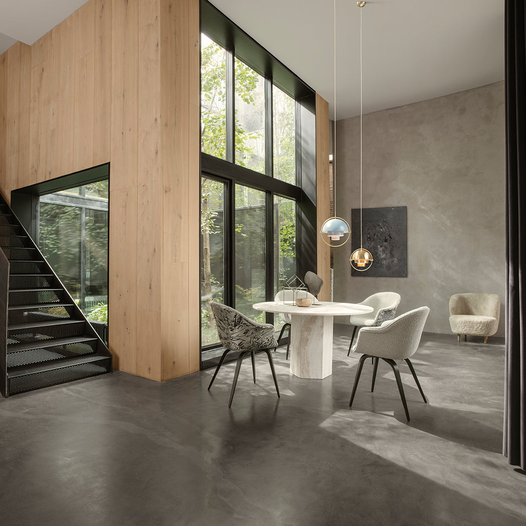 Stone options in Neutral White, Vibrant Gray or colorful Burnt Red each create a focal point of differing intensity, bringing personality to private settings and naturalness and tactility to public interior spaces. The varying heights and diameters within the Epic Table Series mean a single monochromatic table can stand alone or be combined in dynamic clusters of varying height and color.