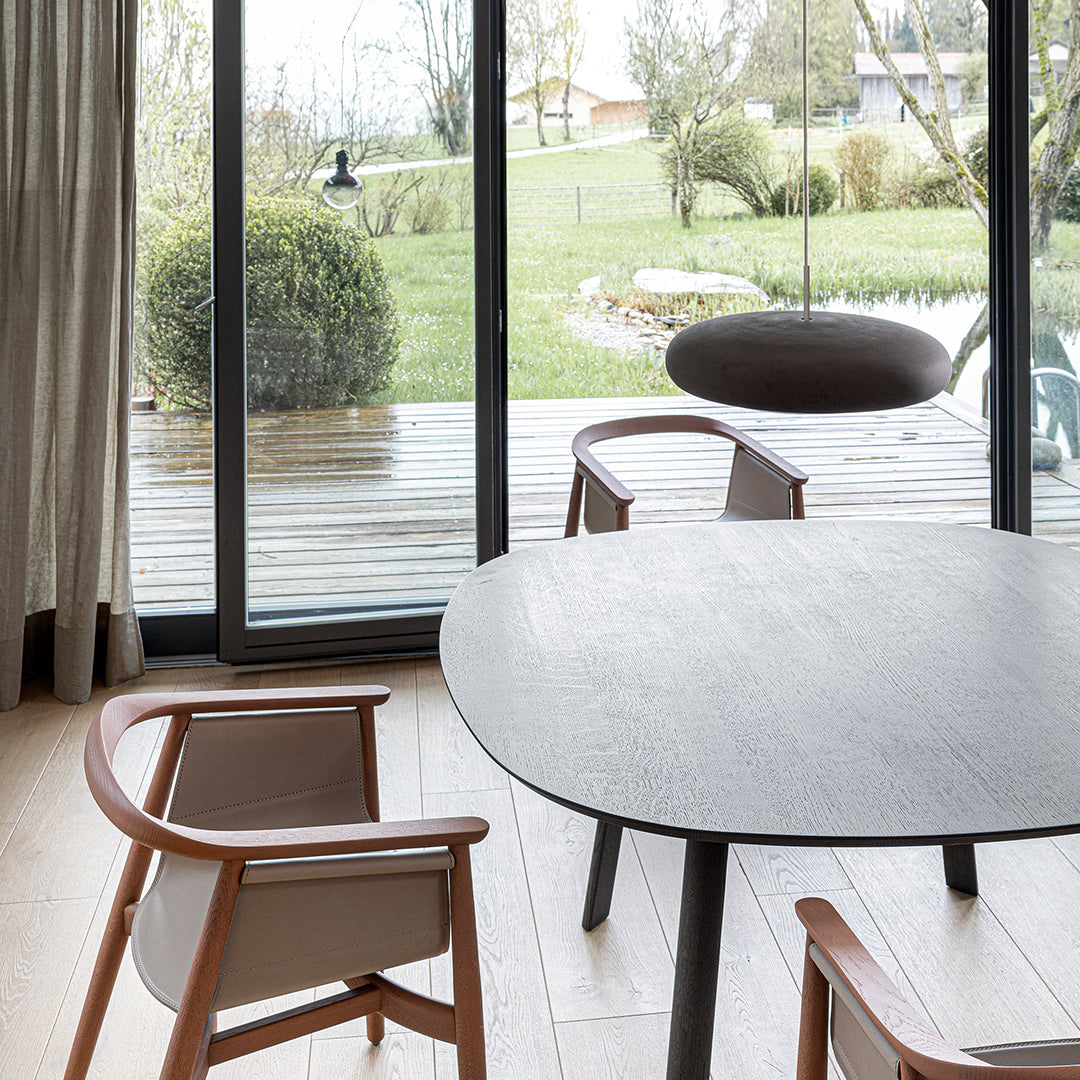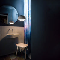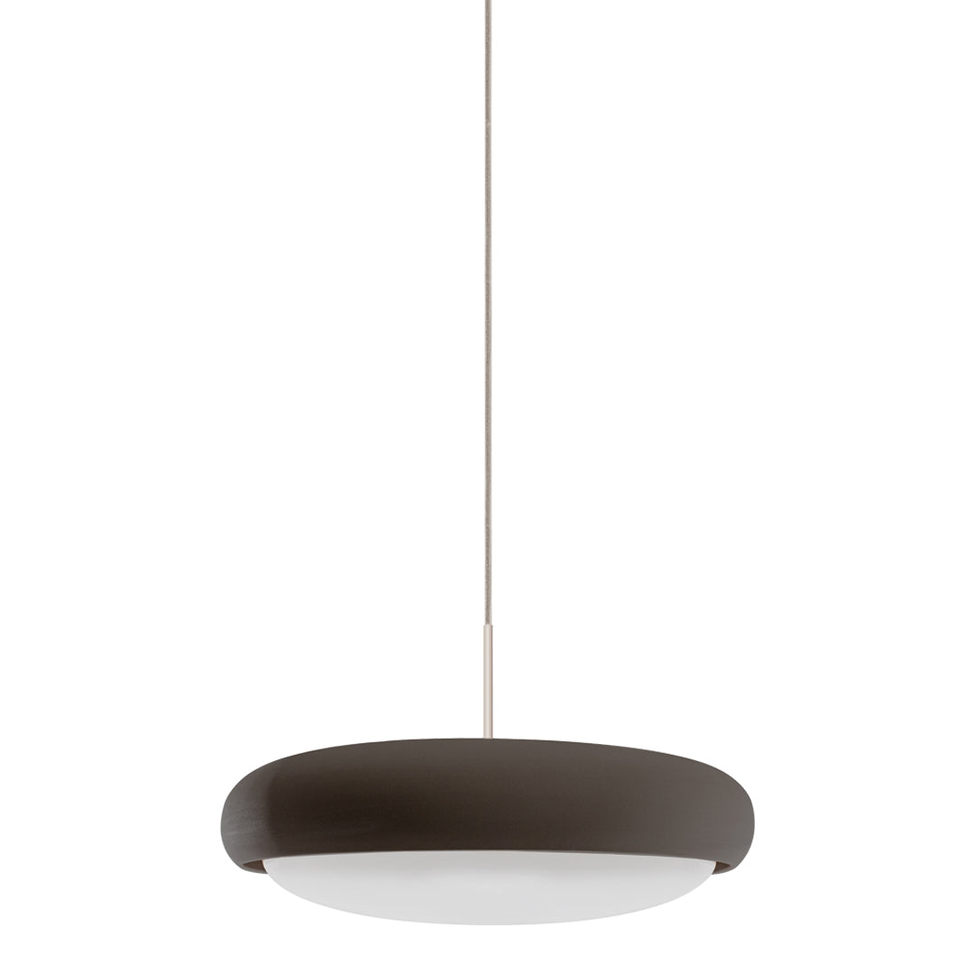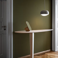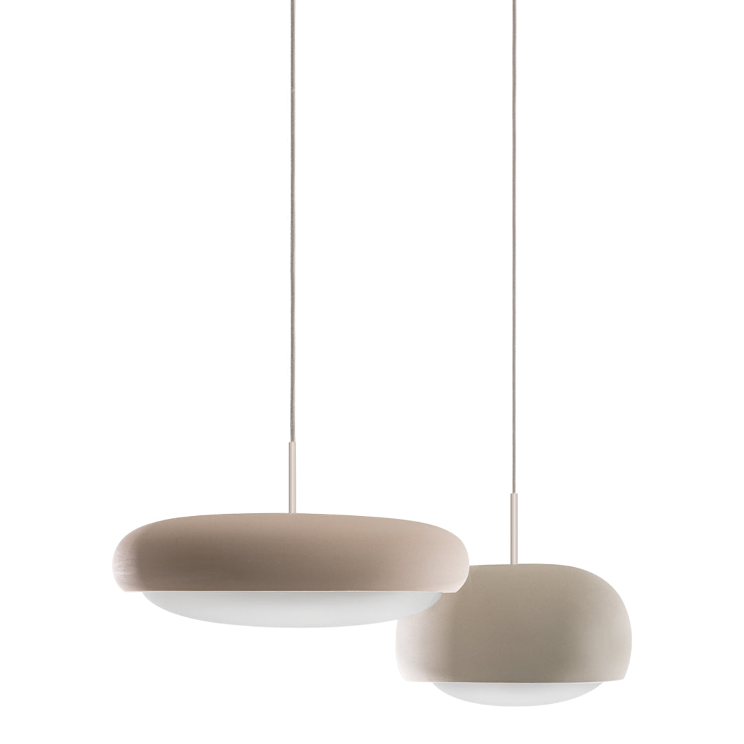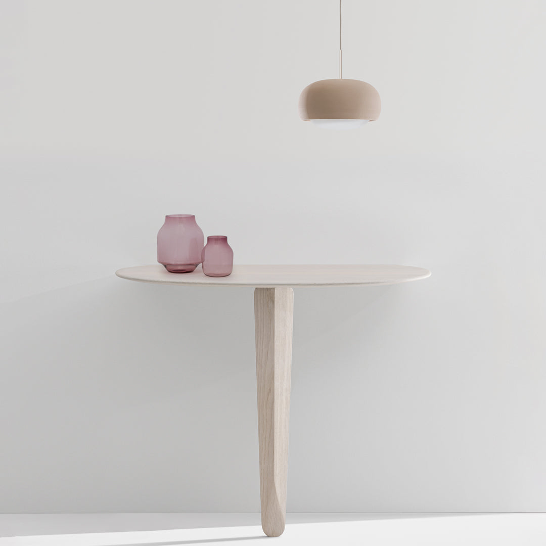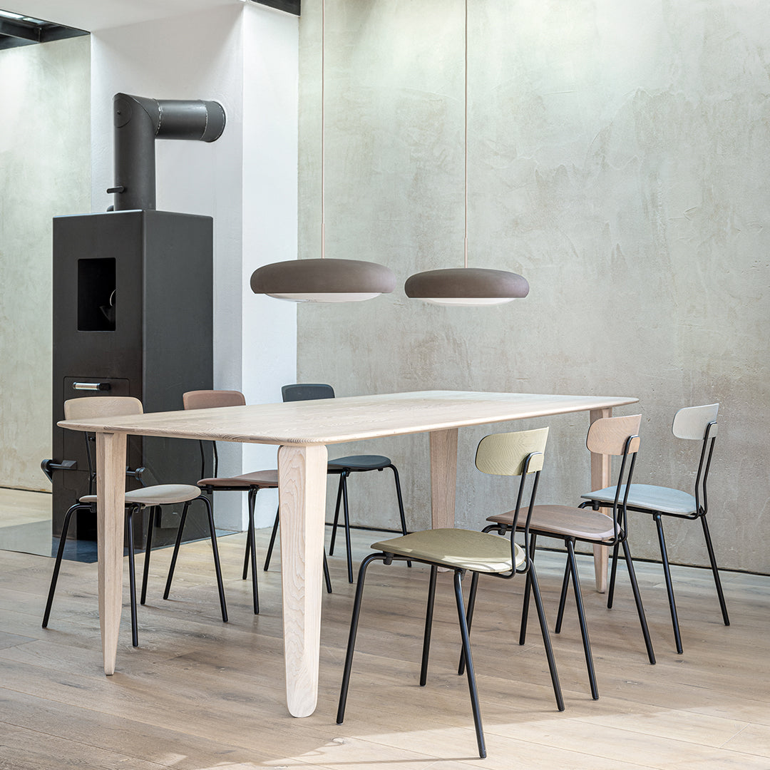 Engobe is a homage to the natural properties of clay. The ceramic lampshade encloses the white coloured glass body. This is mouth-blown and bathes the surroundings in soft light.